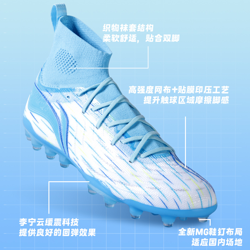 李宁疾影3足球鞋男款青少年成人高帮MG短钉TF碎钉专业训练专用鞋