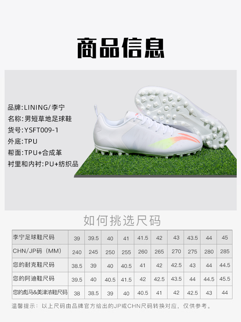 李宁足球鞋男女成人tf碎钉专业比赛训练专用人造草地透气正品鞋子