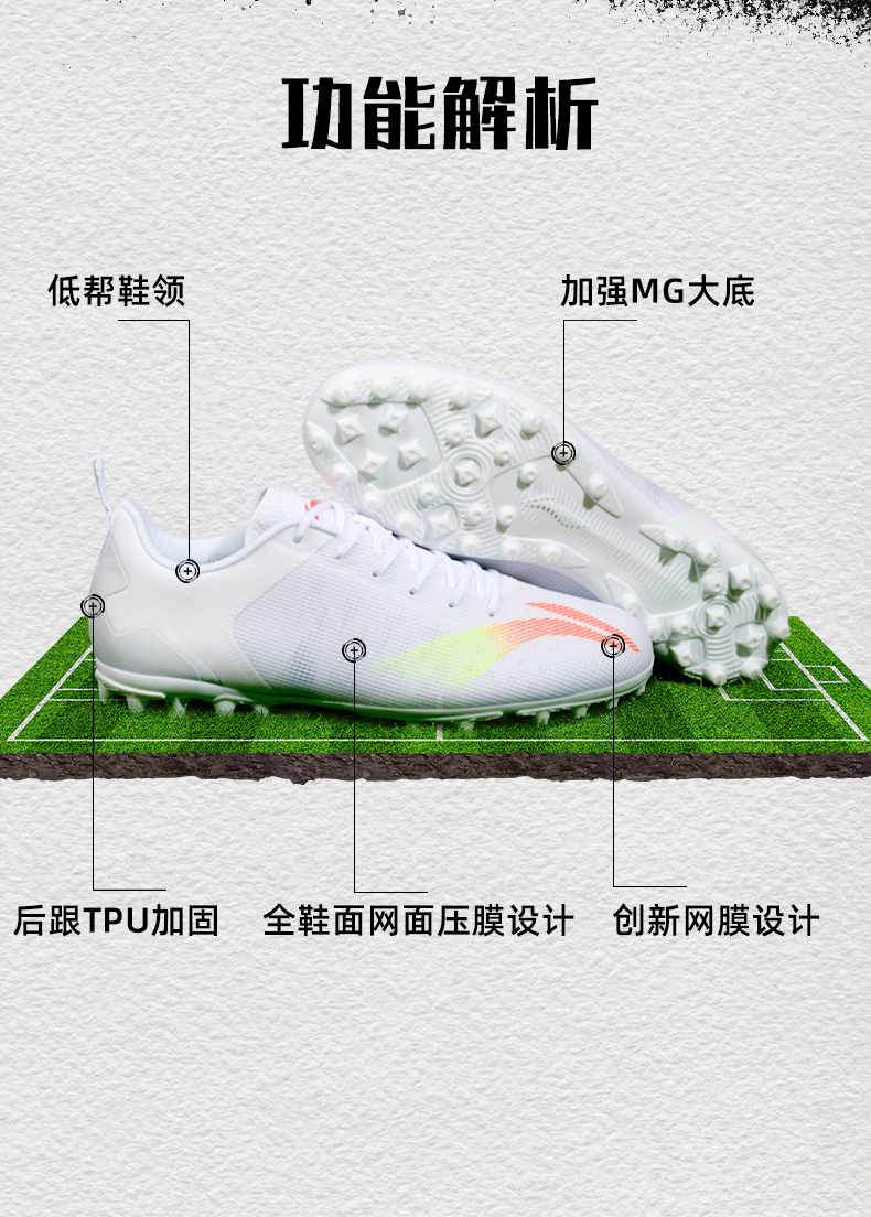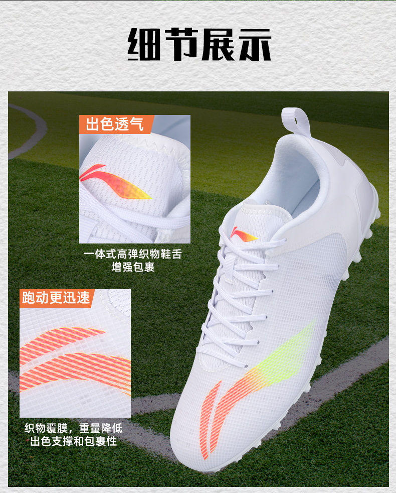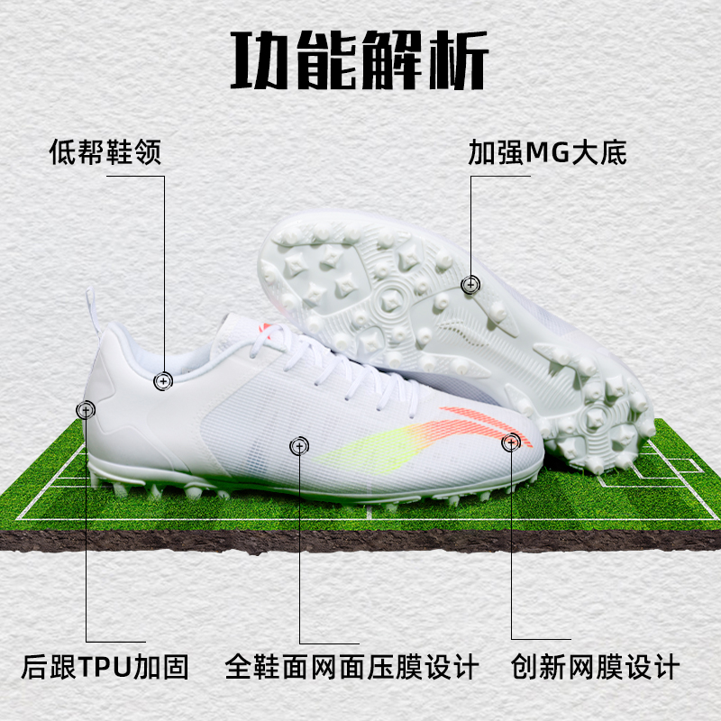 李宁足球鞋成人男款儿童MG/AG短钉专业比赛训练耐磨防滑正品运动