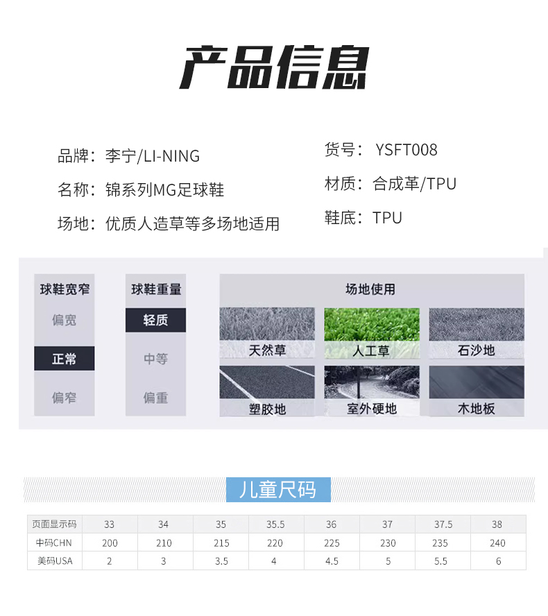 李宁儿童足球鞋小学生男女童MG/AG短钉专业比赛训练TF碎钉正品鞋