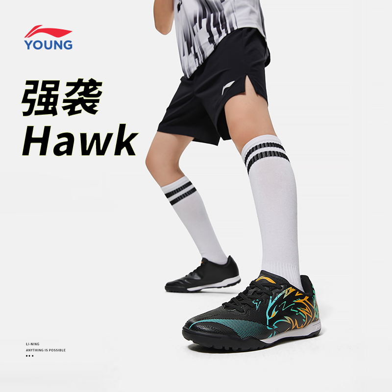 李宁儿童足球鞋TF碎钉男童女孩小学生少儿专用训练青少年正品防滑