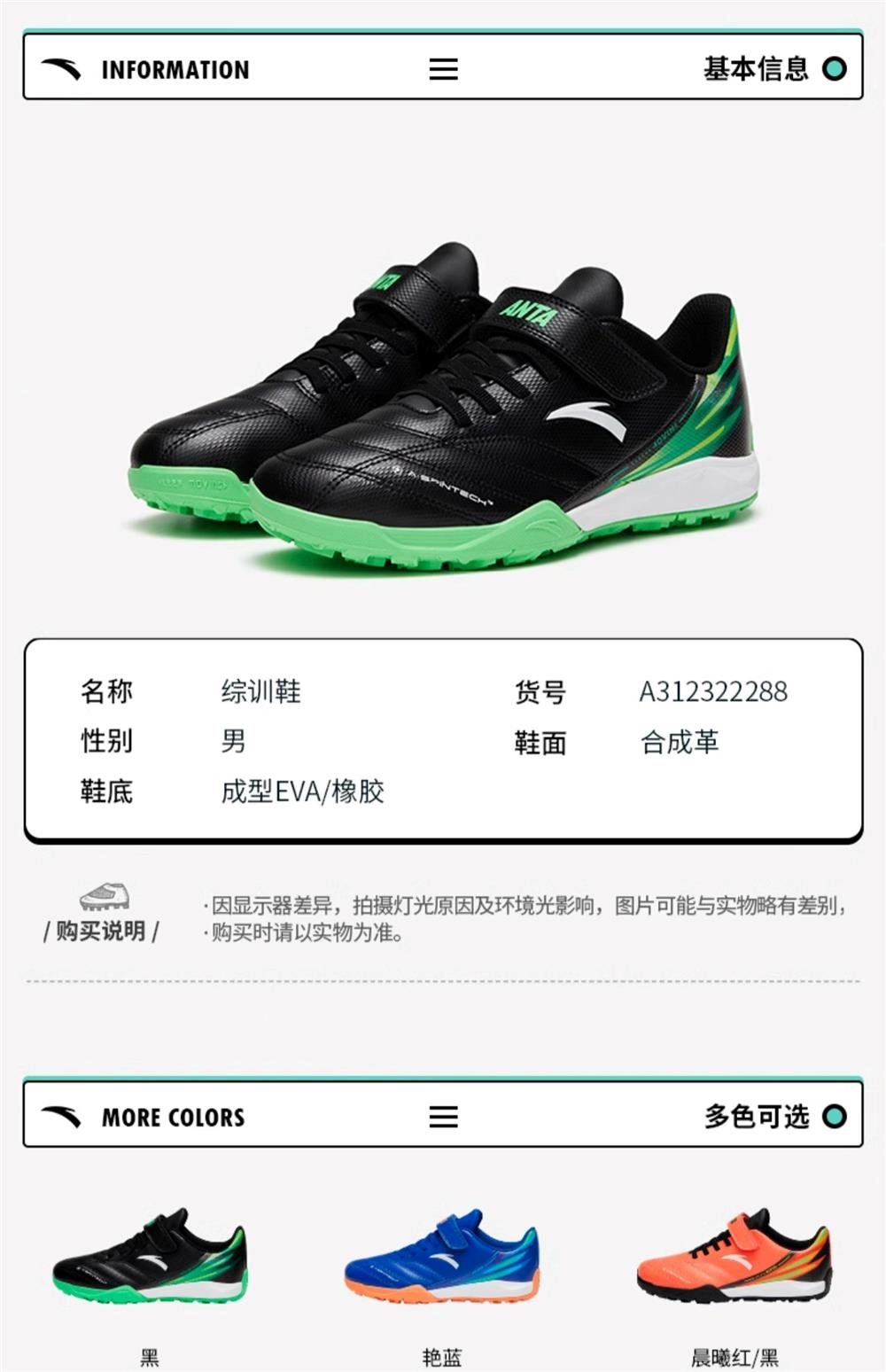 安踏儿童足球鞋TF碎钉男童鞋小学生专用青少年运动专业训练鞋钉鞋
