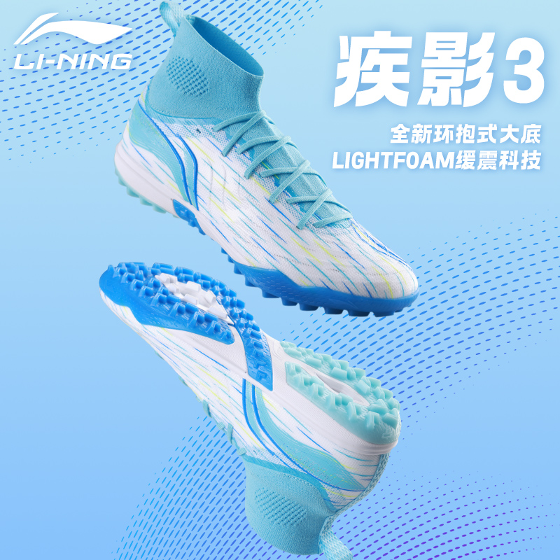 李宁足球鞋疾影3男款TF碎钉正品成人高帮专业比赛训练青少年球鞋