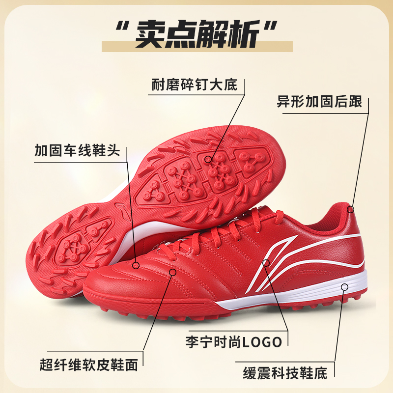 李宁足球鞋男款成人TF碎钉儿童男童小学生青少年训练专用正品球鞋