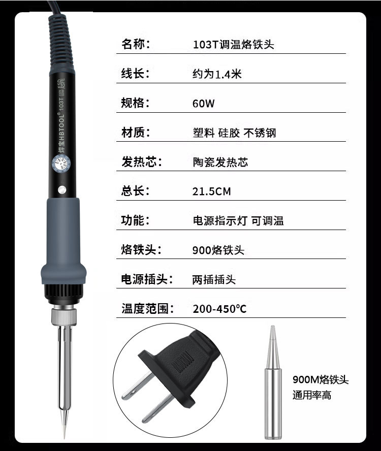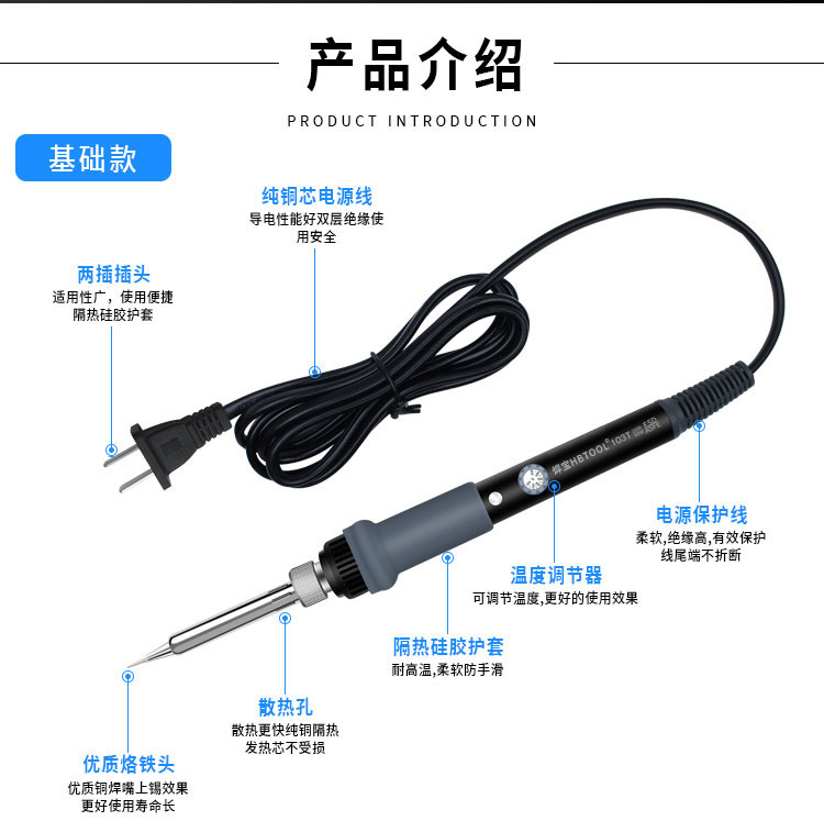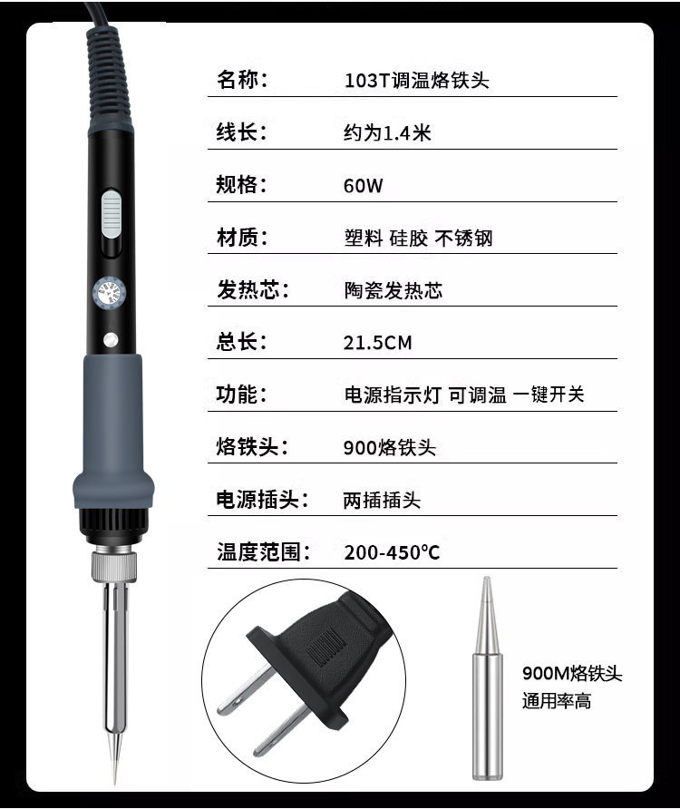 恒温电烙铁家用103套装220V带开关可调温电焊笔焊锡枪维修焊接60W