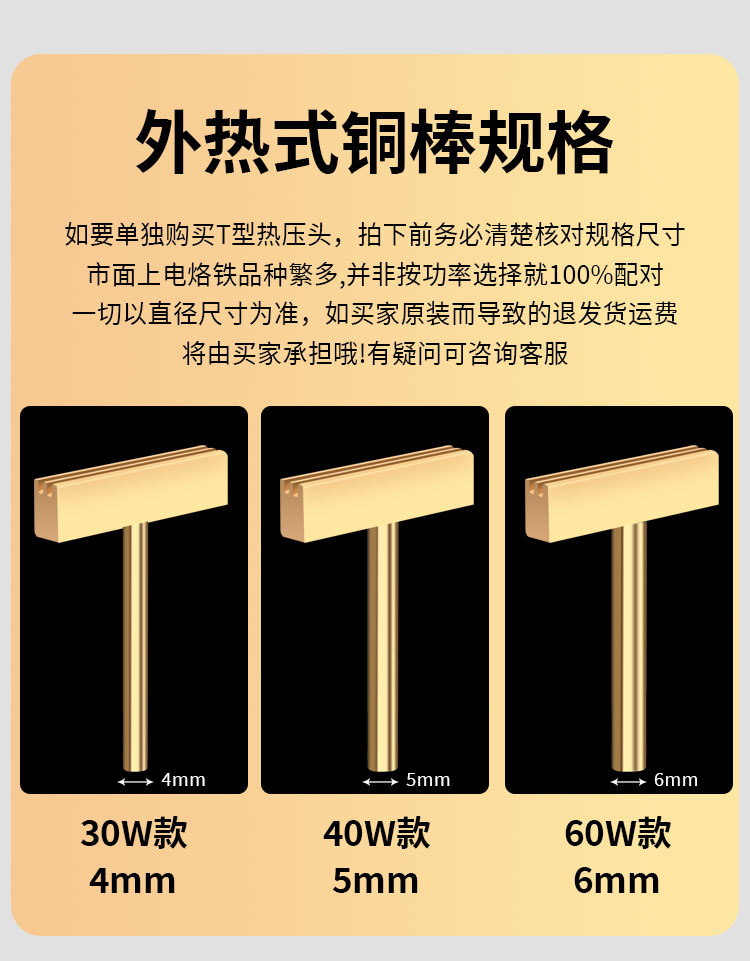 30W40W60WT型电烙铁烙铁头全铜液晶排线焊接工具屏线热压头条