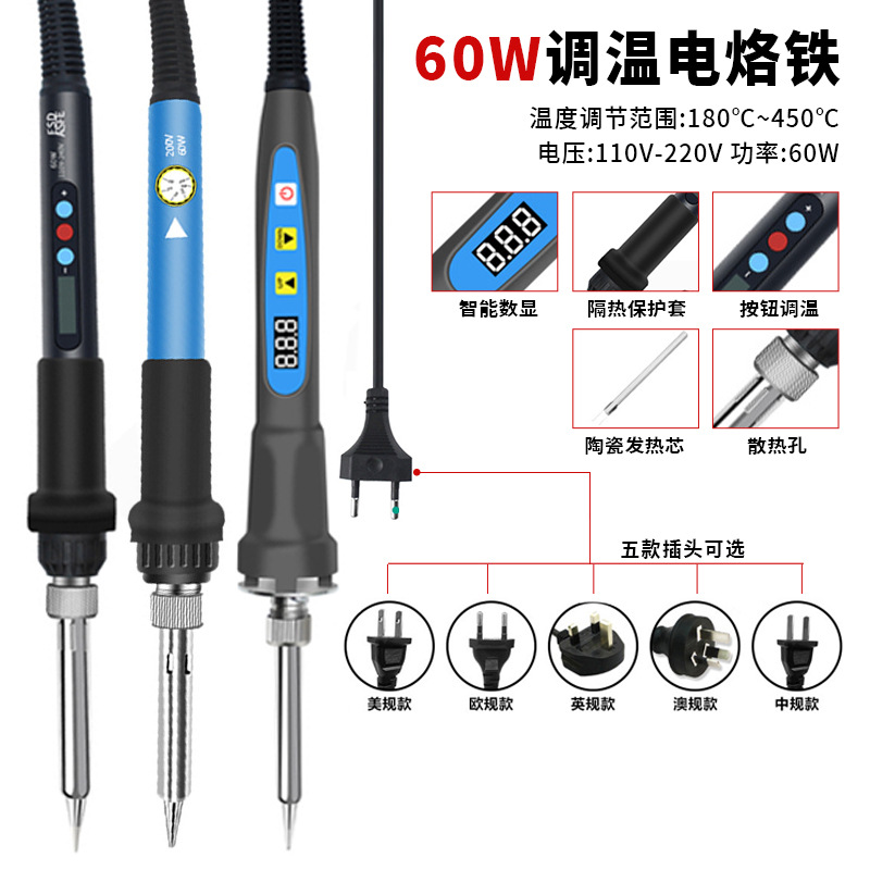 可调温电烙铁60W家用维修焊锡笔欧规220V电焊笔工具包套装电