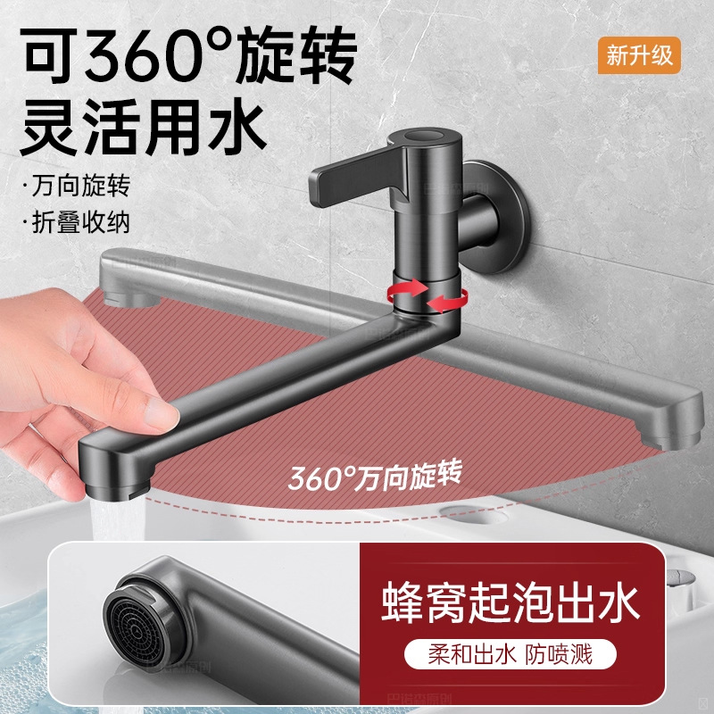 阳台拖把池加长水龙头入墙式单冷洗衣池水槽墙出水4分旋转可折叠