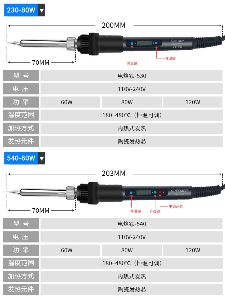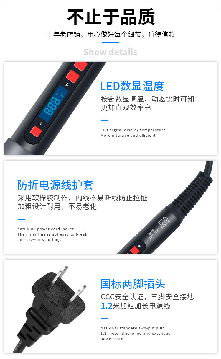 80W内热式数显可调温恒温电烙铁套装电洛铁电焊笔60W家用维修工具