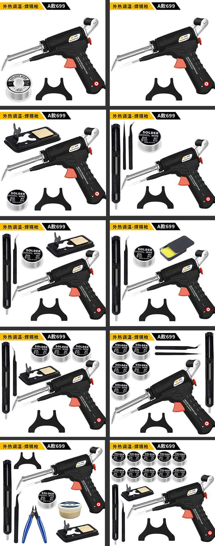 - 699A黑色+30克锡丝+弯镊子+全黑吸器+小海绵盒子