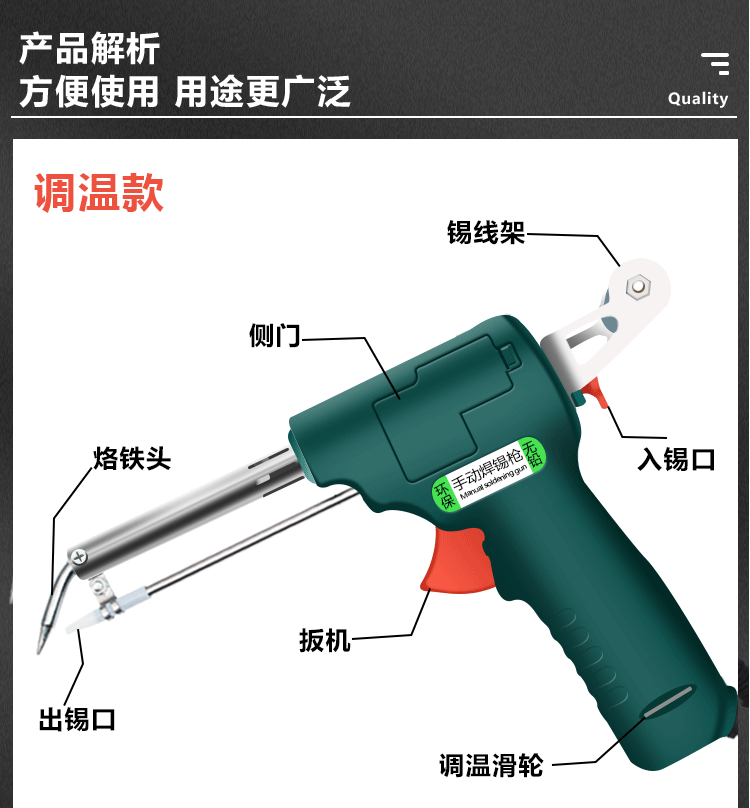 - 内80调温瓦枪+不锈钢锡线+3只头+海绵