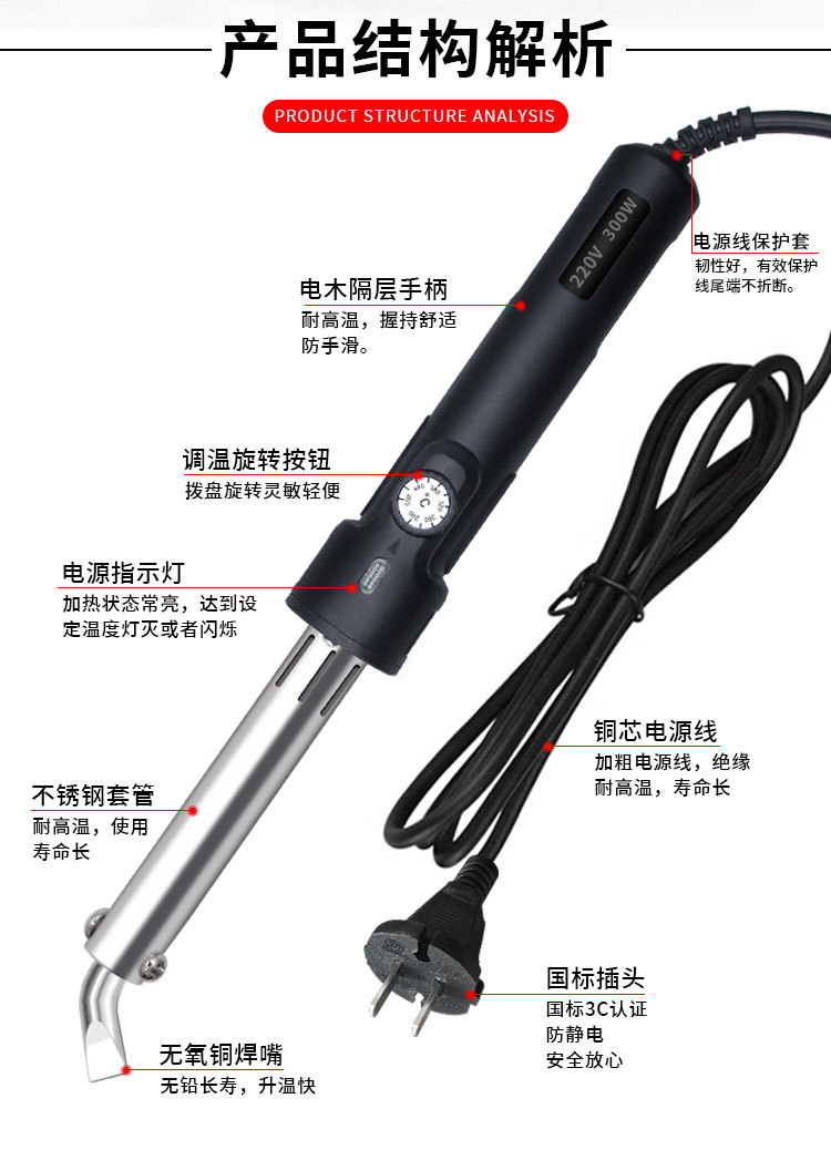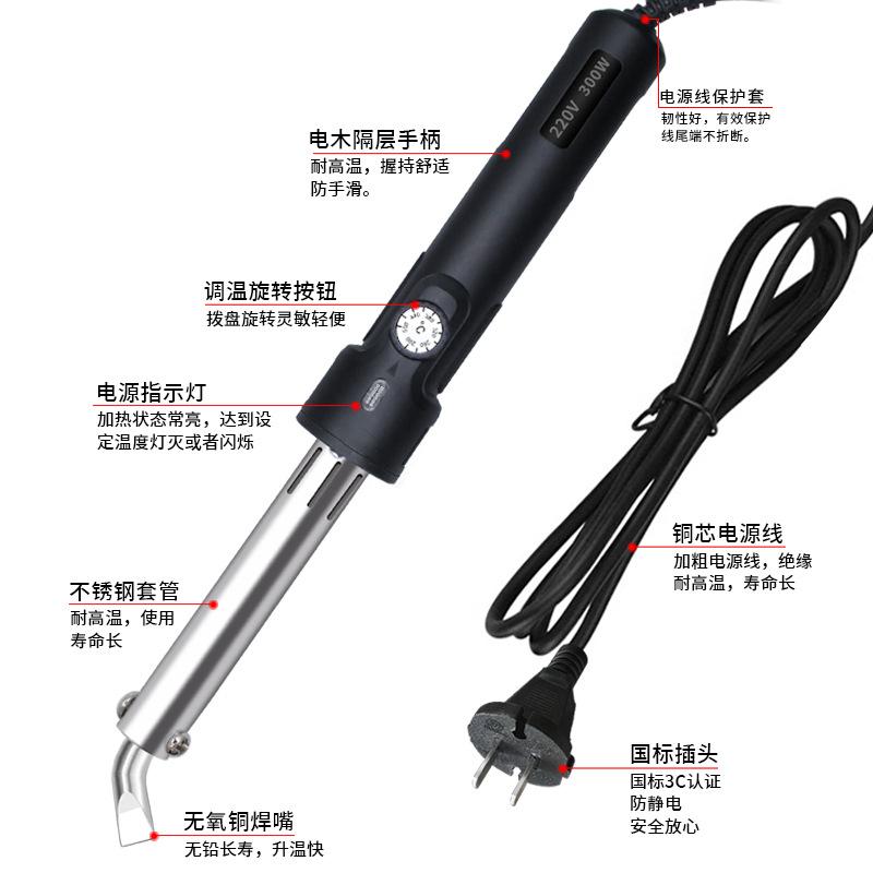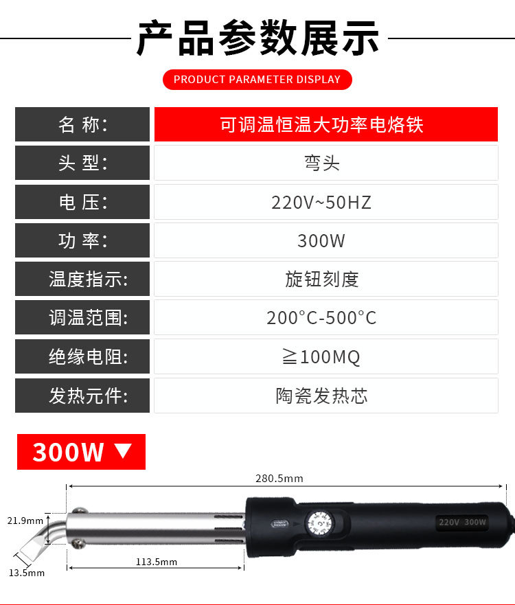 WTA300W可调恒温大功率工业型外热式电烙铁弯扁咀带指示灯