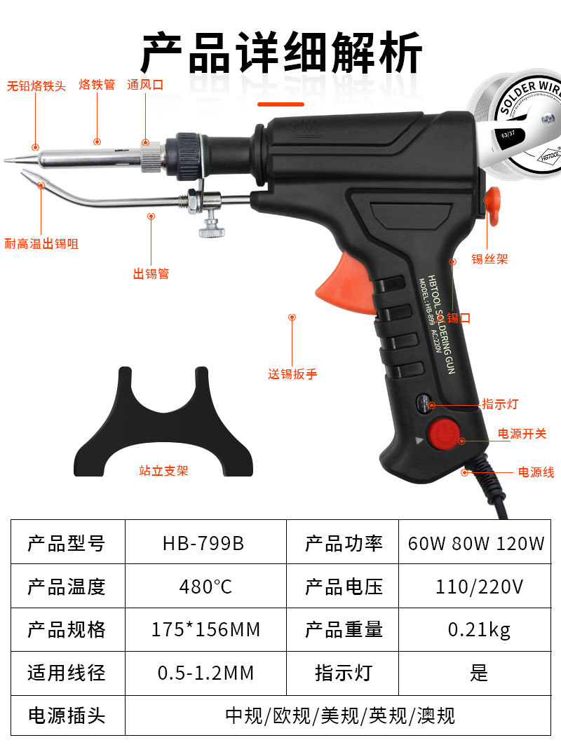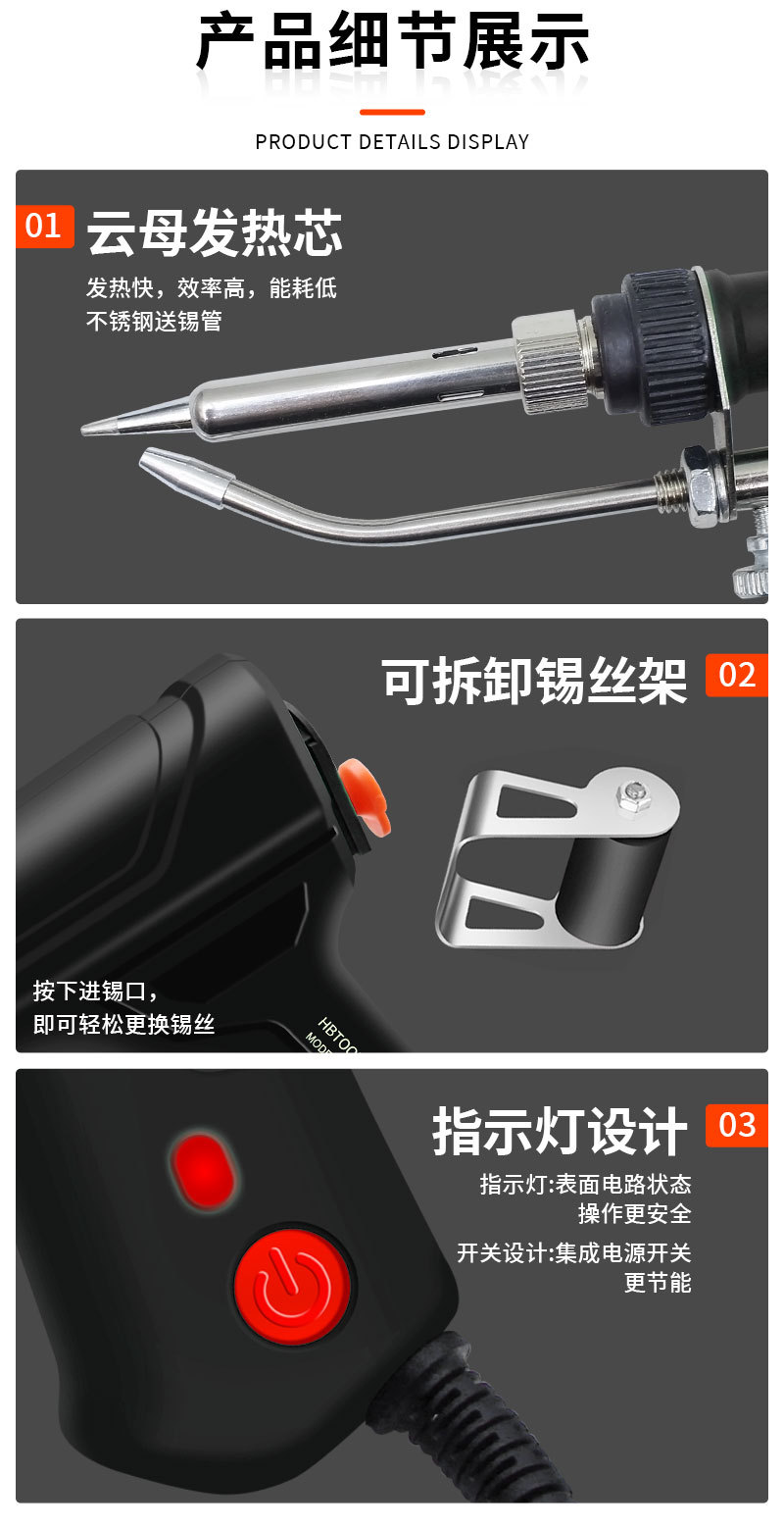 便捷焊锡枪内热式手动送锡焊枪黑色套装自动80W手持式电烙铁