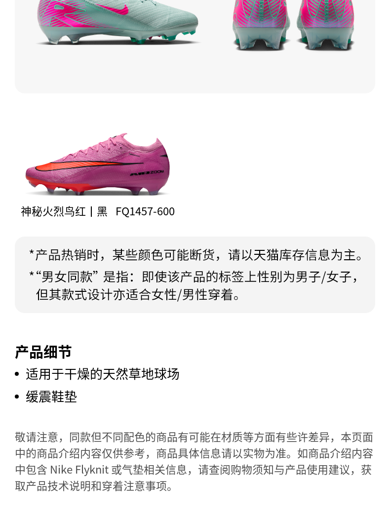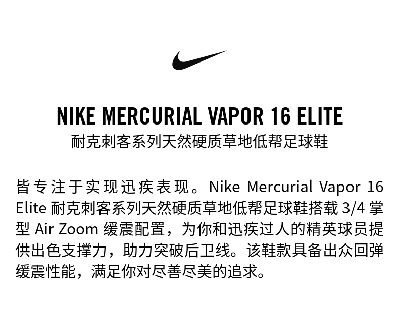 Nike官方VAPOR 16耐克刺客系列天然硬质草地低帮足球鞋FQ1457