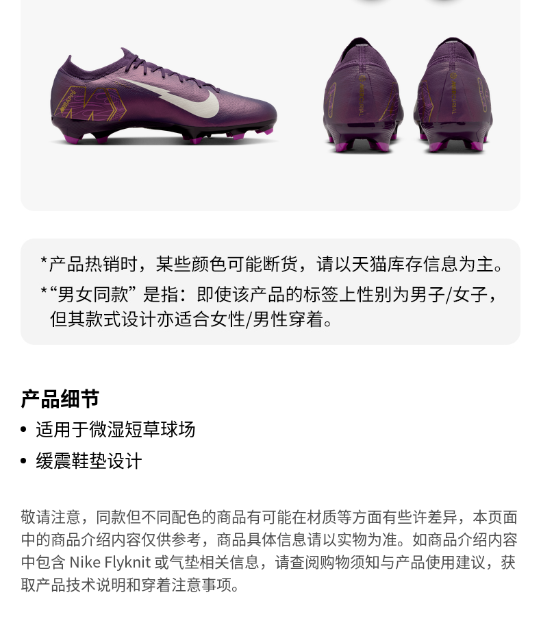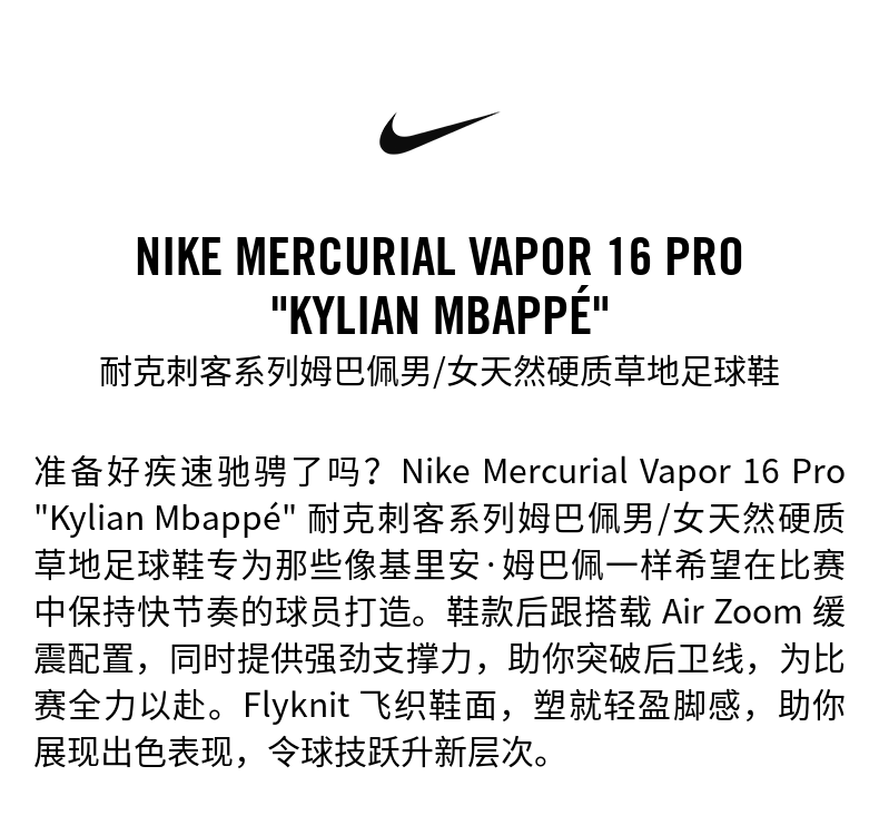 耐克刺客系列姆巴佩男女FG足球鞋夏官方NIKE VAPOR 16 PRO FQ8689