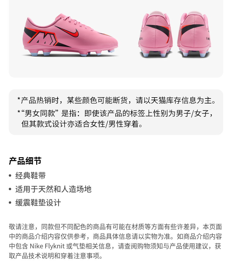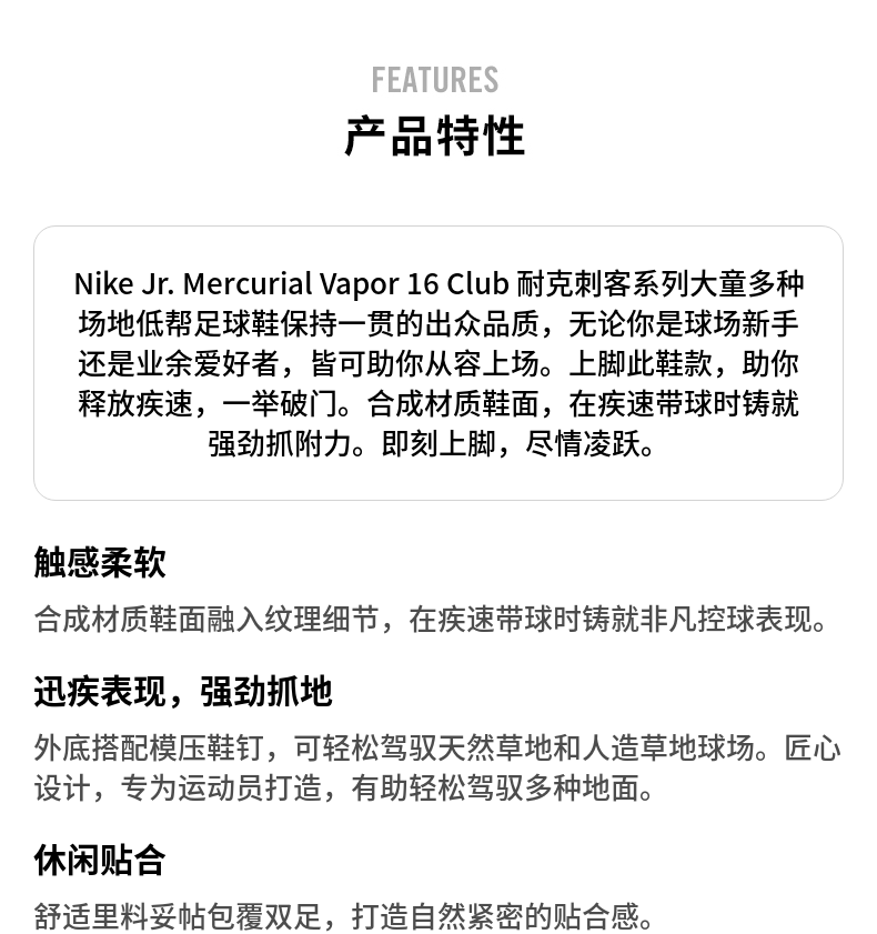Nike耐克官方刺客系列男女童VAPOR 16 MG大童低帮足球鞋秋FQ8286