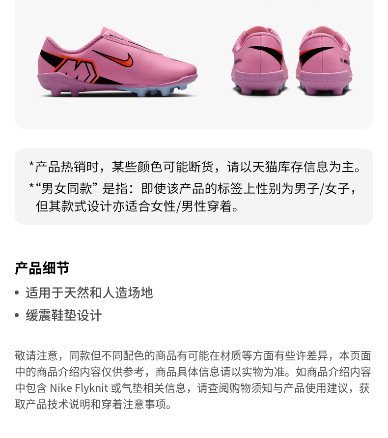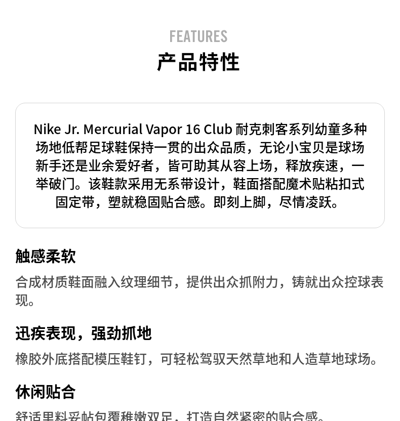 Nike耐克官方刺客系列男女童VAPOR 16 MG幼童低帮足球鞋秋FQ8290
