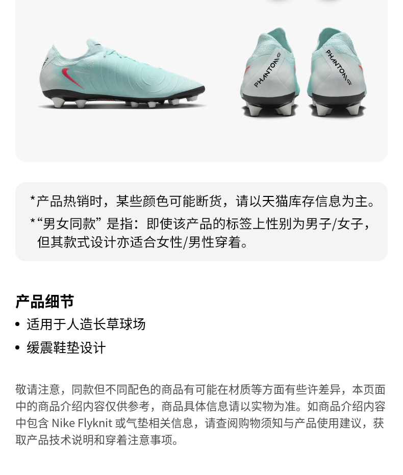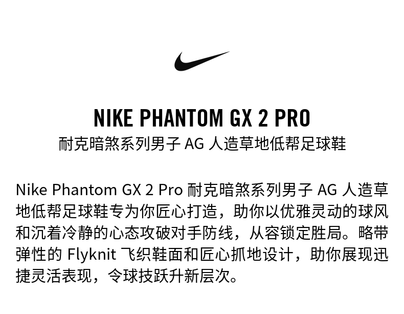 Nike官方PHANTOM耐克暗煞系列男子AG人造草地低帮足球鞋FJ2582