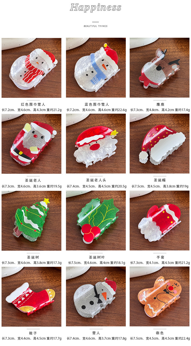 新款圣诞节主题抓夹雪人圣诞树圣诞老人发饰细闪节日氛围少女发夹