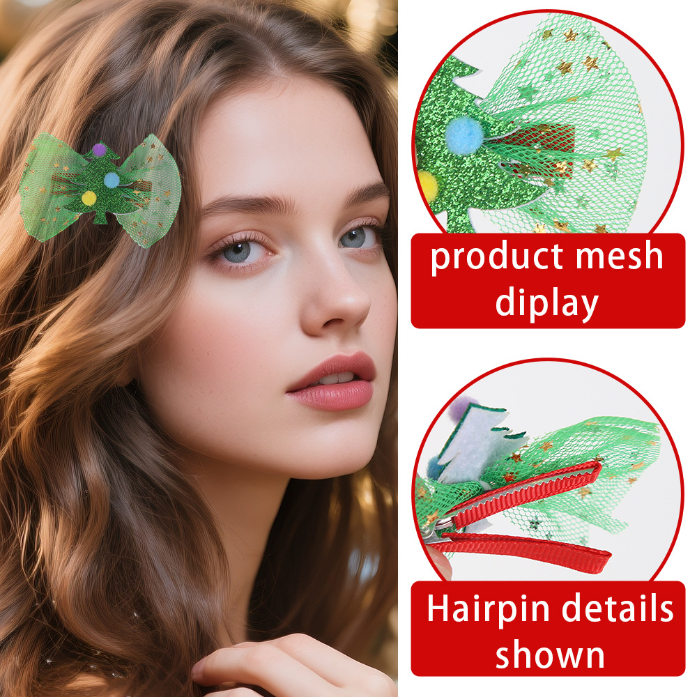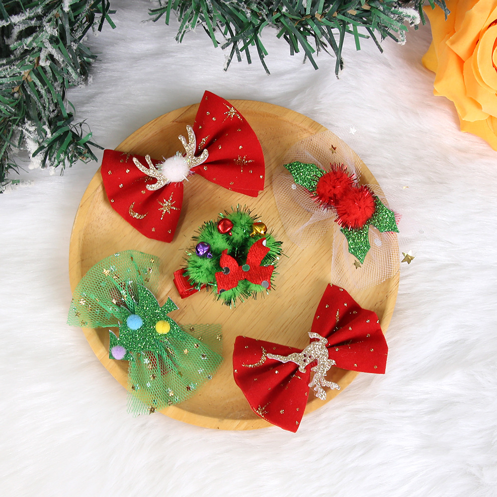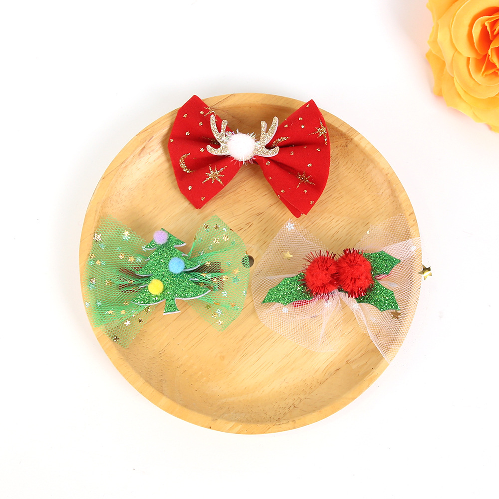 圣诞发饰网纱蝴蝶结发夹女圣诞节派对装饰雪花麋鹿发卡头饰