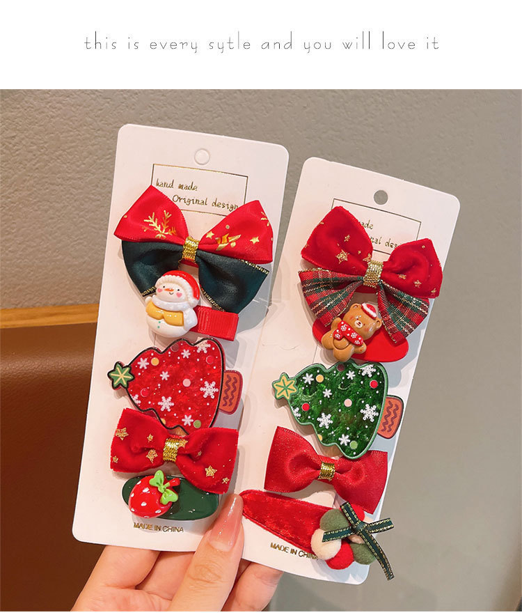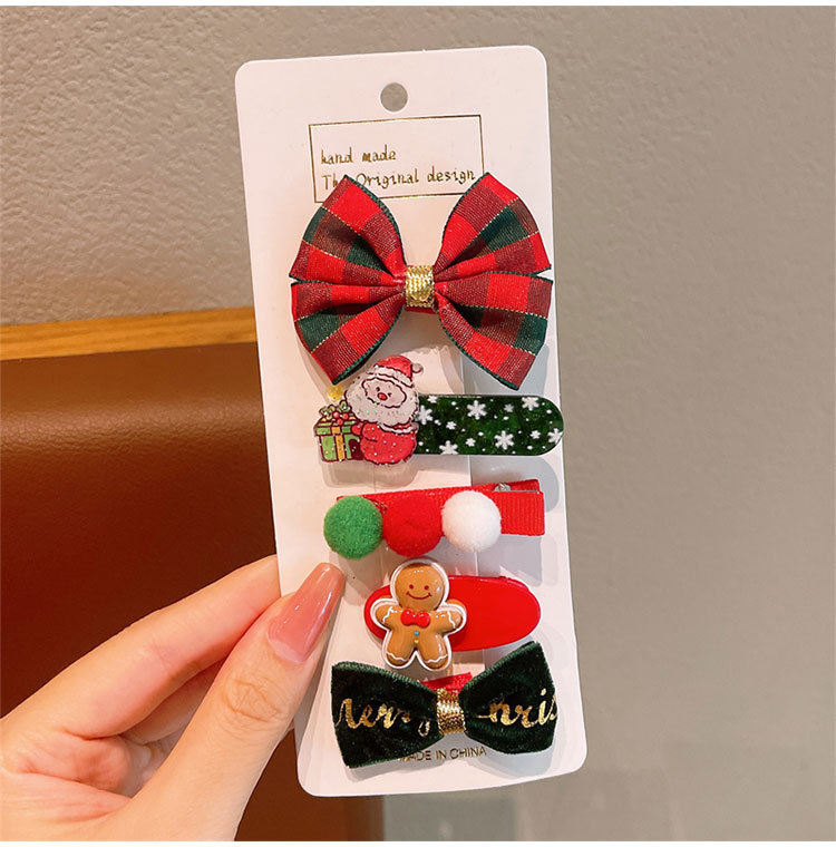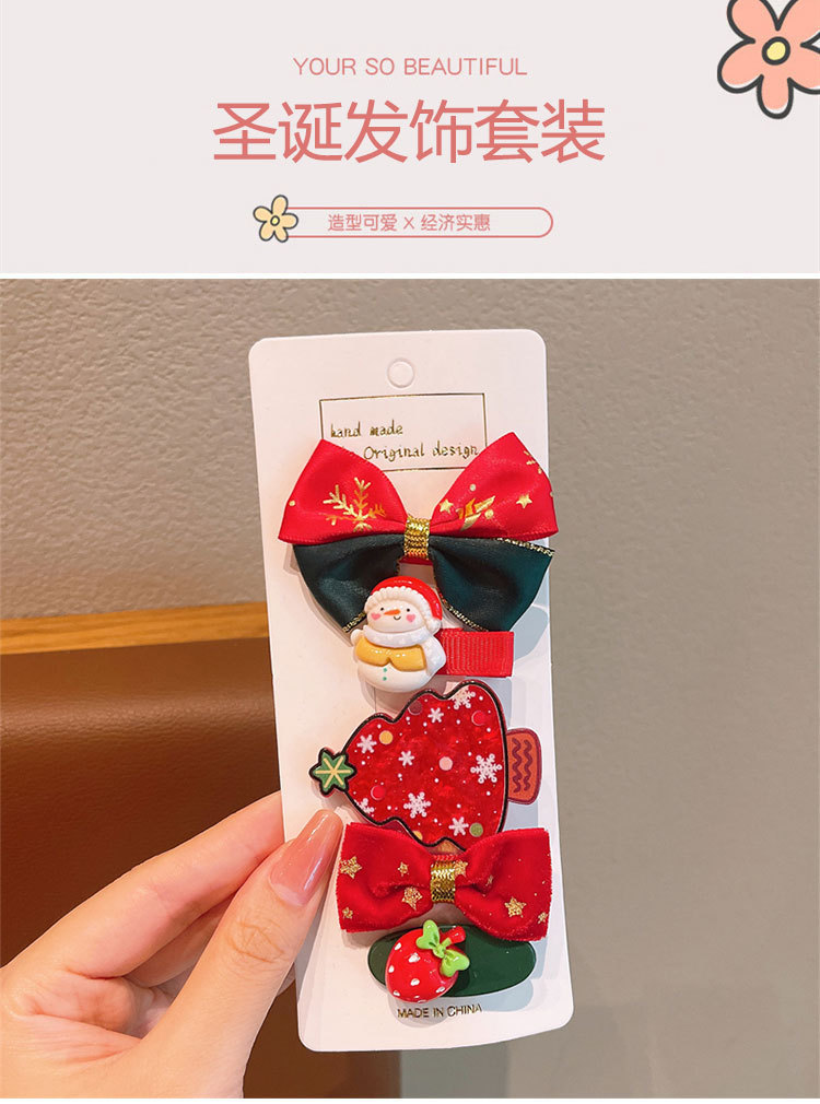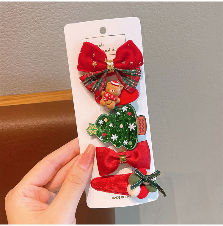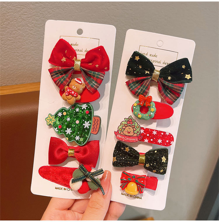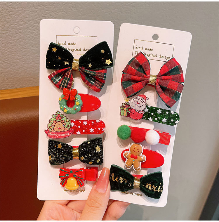 新款圣诞蝴蝶结发卡可爱头饰卡通布艺铃铛麋鹿雪花圣诞树发夹套装