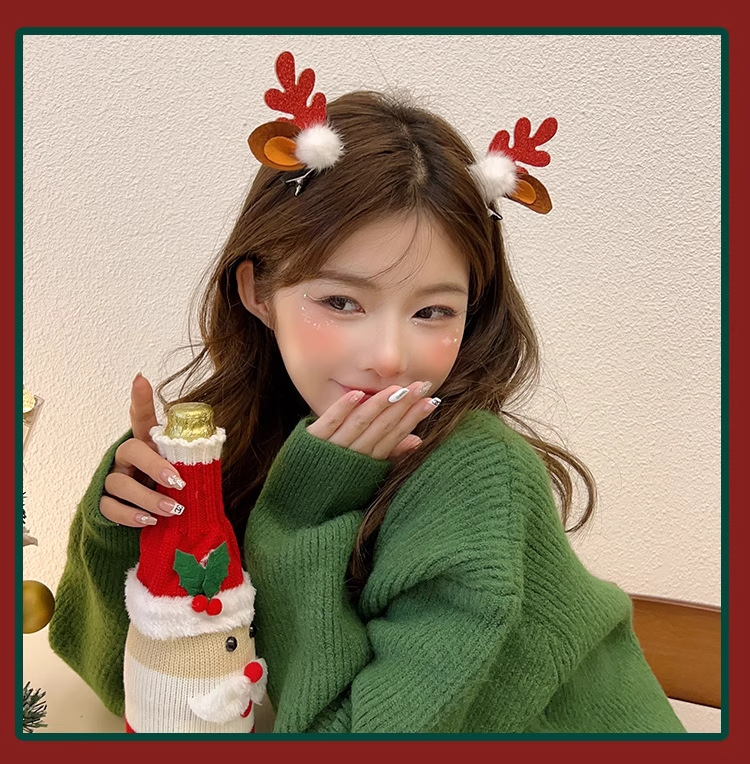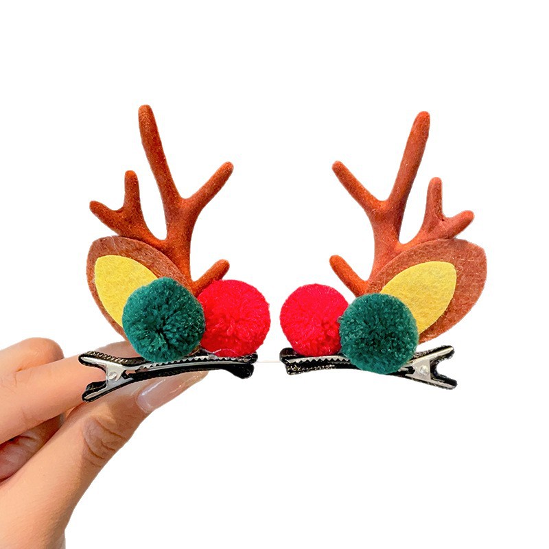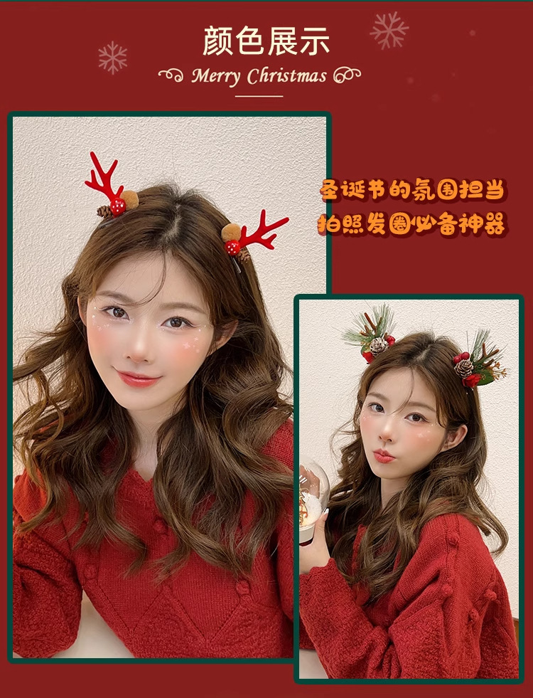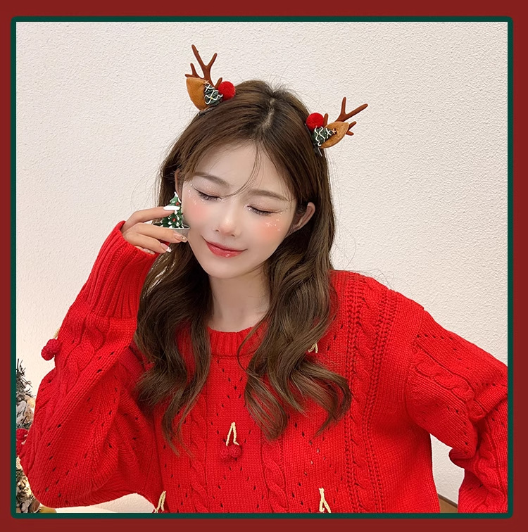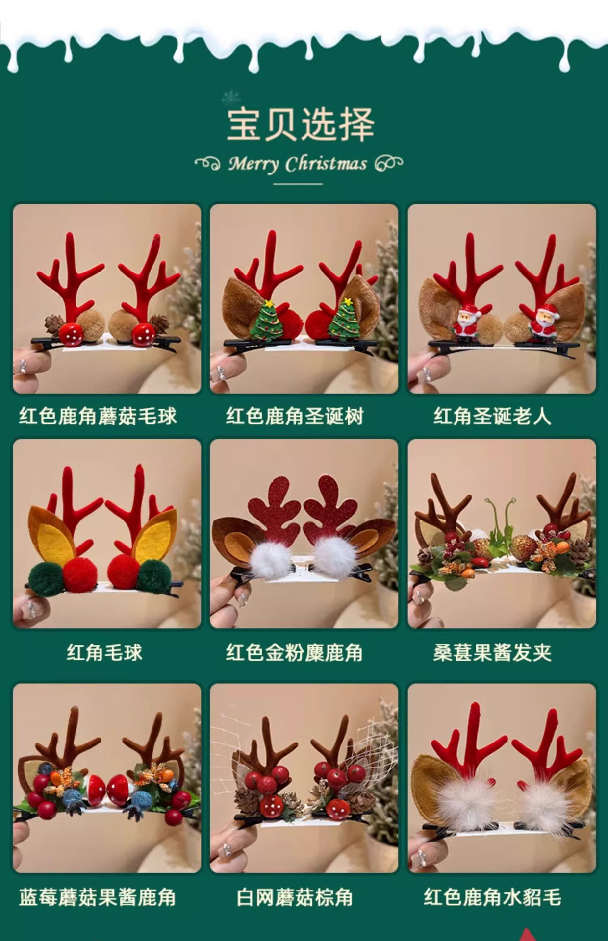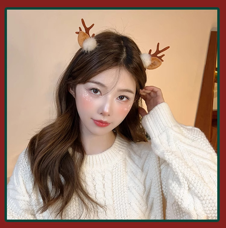 圣诞节麋鹿发夹女节日拍照道具饰品发卡儿童可爱鹿角耳朵对夹发饰