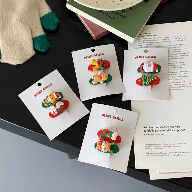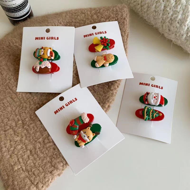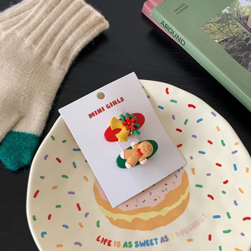 可爱圣诞发夹姜饼人麋鹿边夹2个装少女侧夹刘海夹边夹发卡发