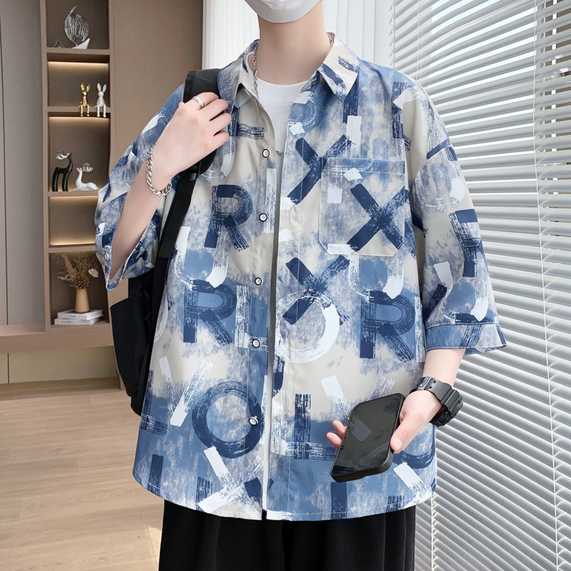 设计师夏季新款短袖衬衫男士潮流港风青少年翻领宽松T恤