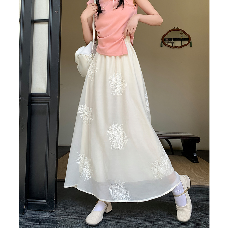 白色绣花半身裙春夏薄款宽松国风显瘦高腰温柔气质蓬蓬长裙