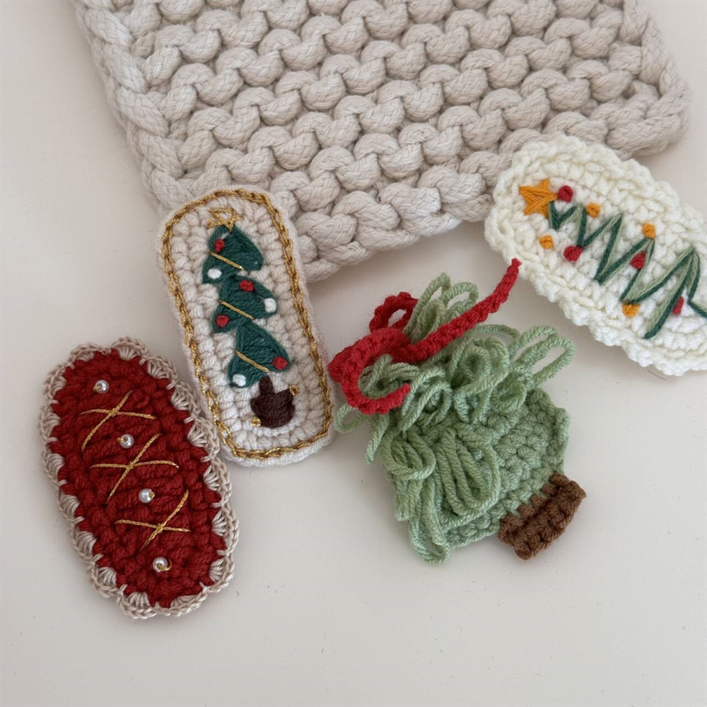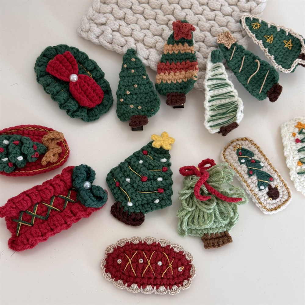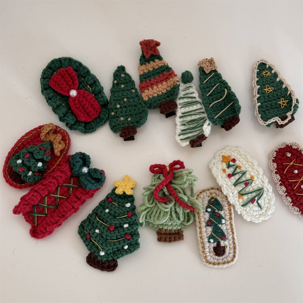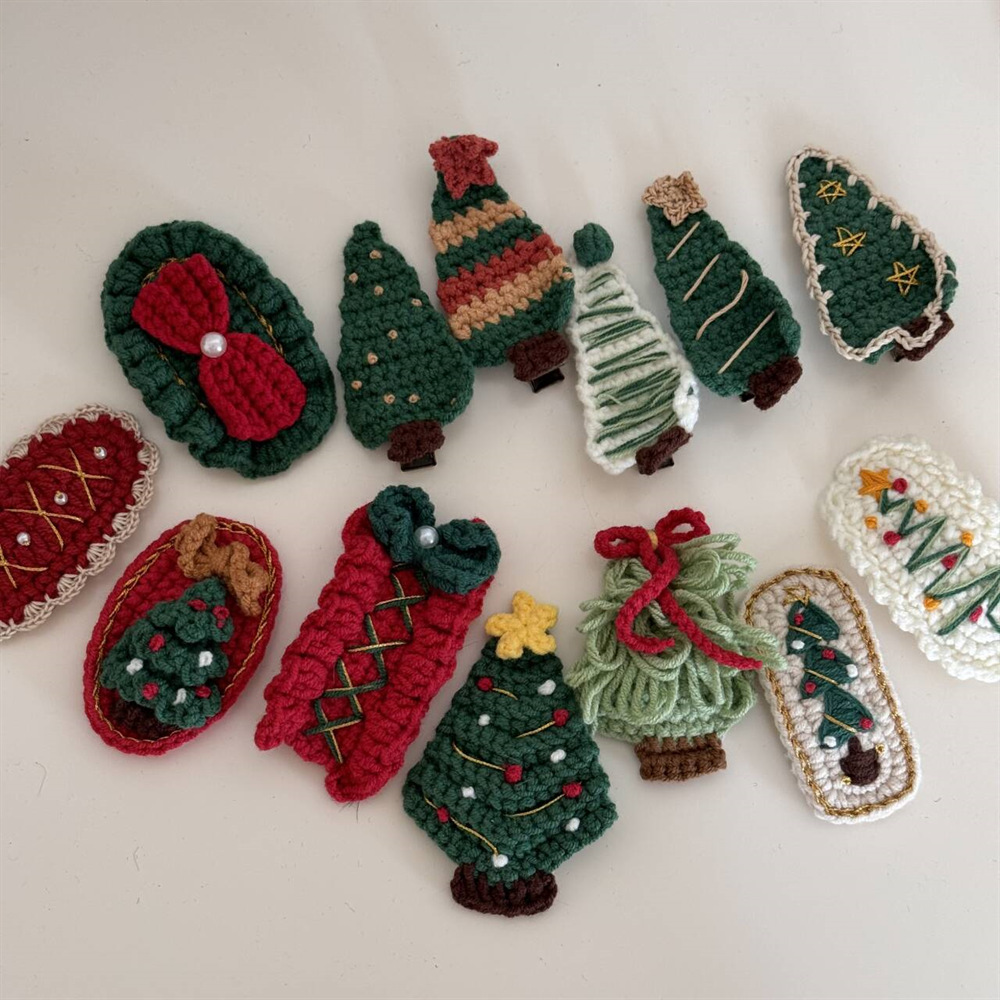 新款圣诞钩织刺绣冒险BB夹儿童少女甜美可爱节日发卡秋冬发饰