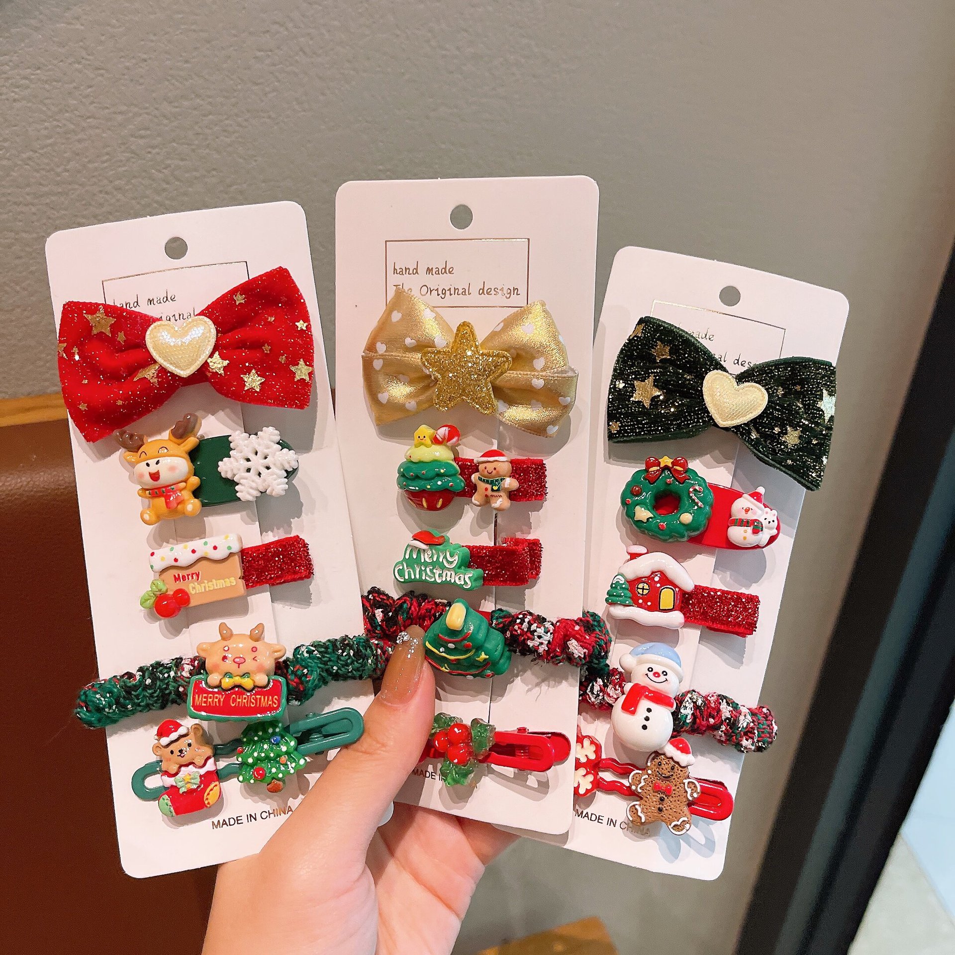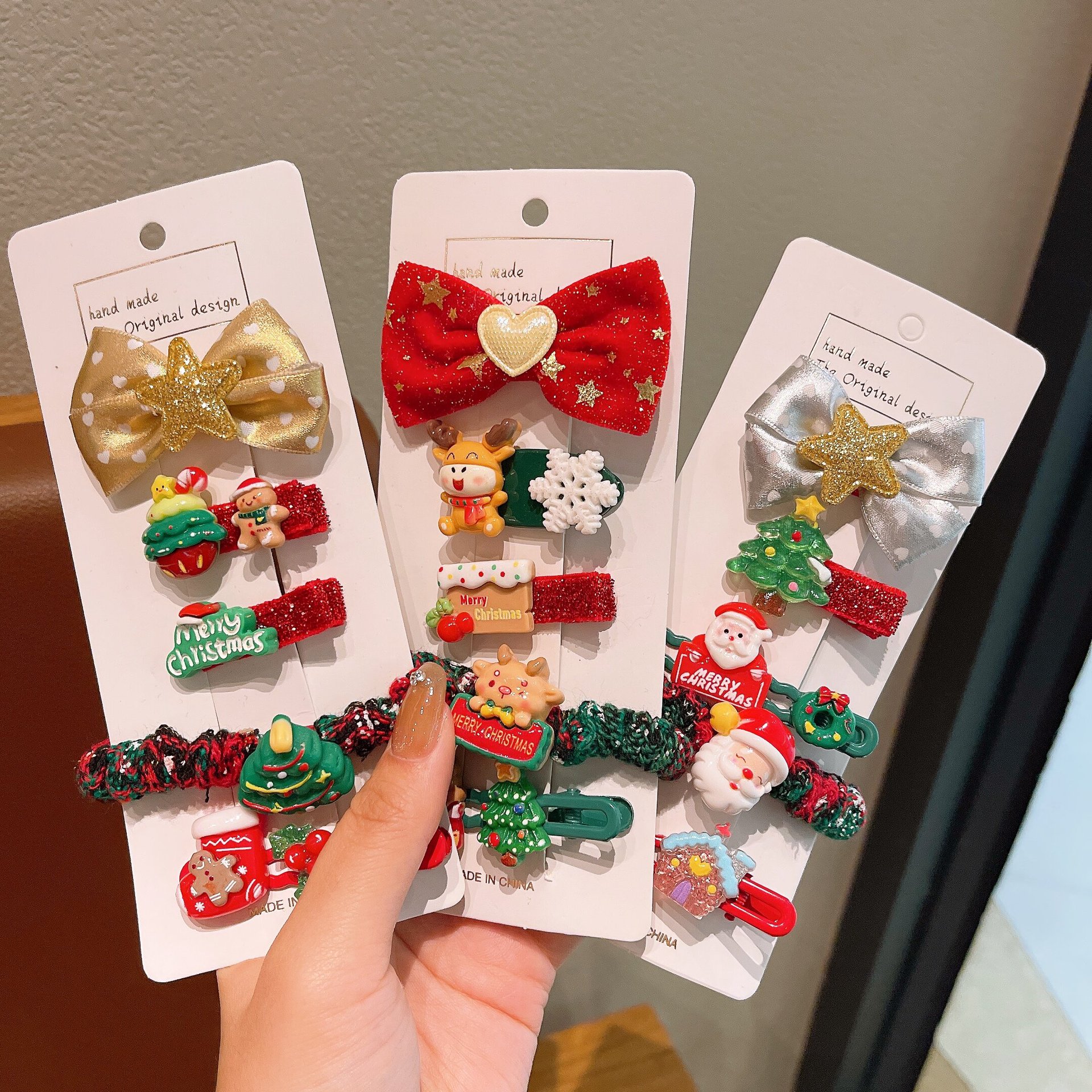 儿童圣诞节头饰蝴蝶结发夹刘海侧边夹圣诞老人发卡可爱铃铛鸭嘴夹