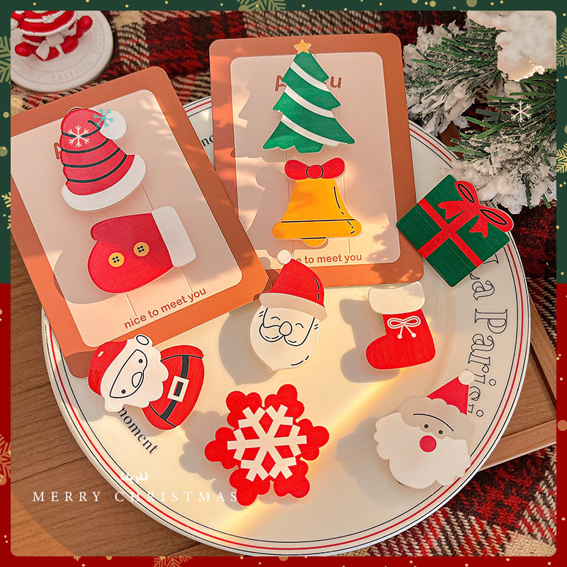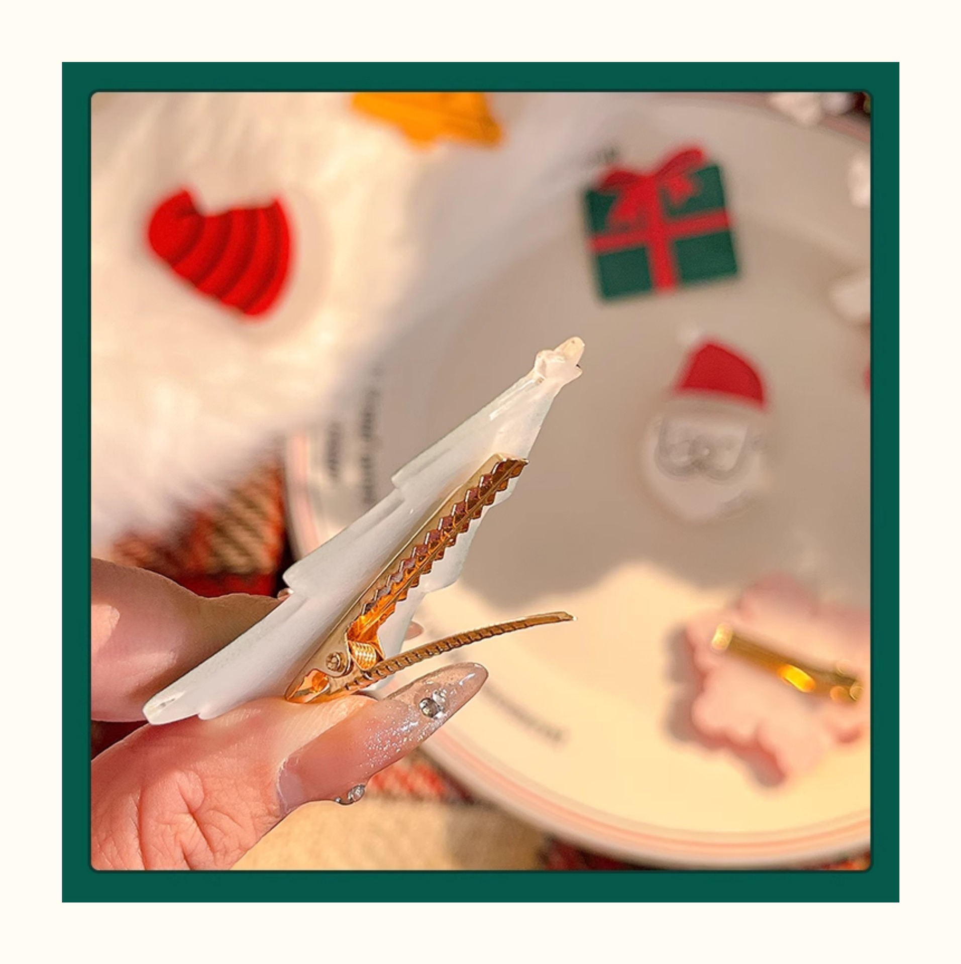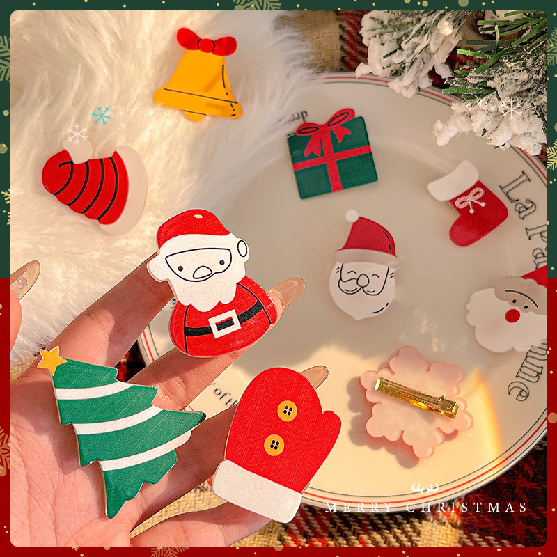 卡通可爱圣诞老人发夹女孩碎发鸭嘴夹子发卡节日氛围感刘海夹头饰