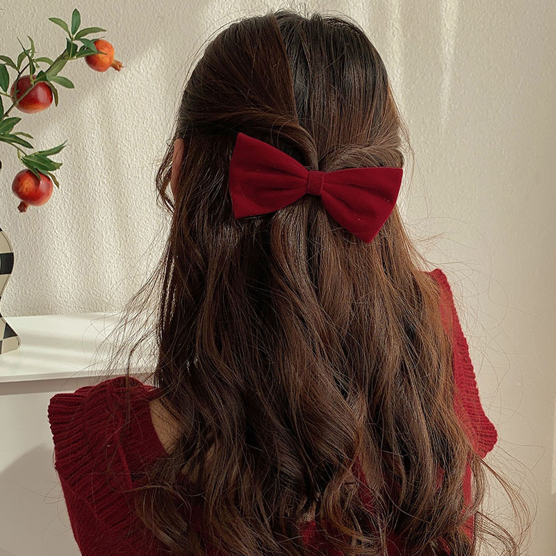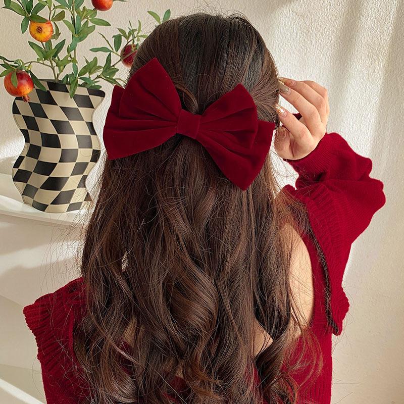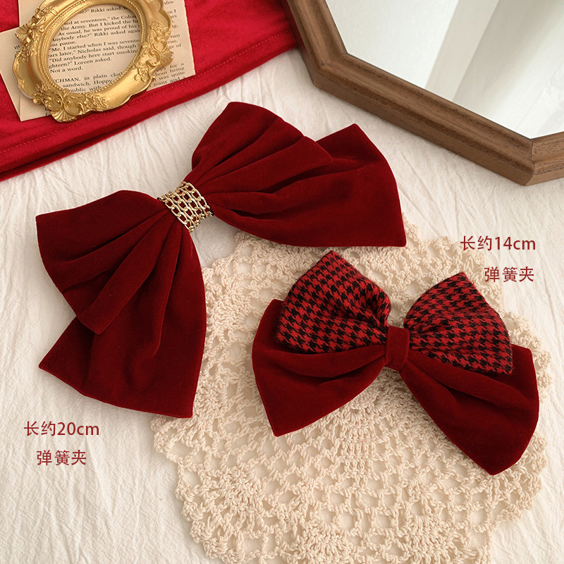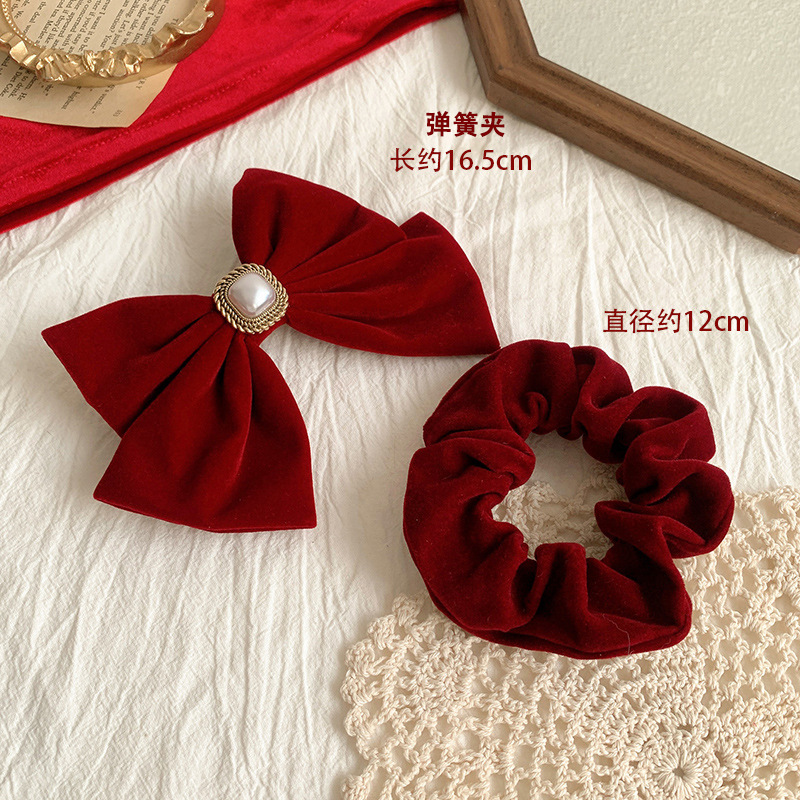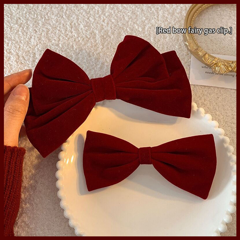 红色蝴蝶结发圈女圣诞节发夹发绳新款发饰夹子后脑勺头饰