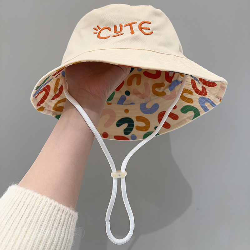 儿童遮阳渔夫帽2025春夏新款洋气可爱字母双面可戴男女童防晒帽子
