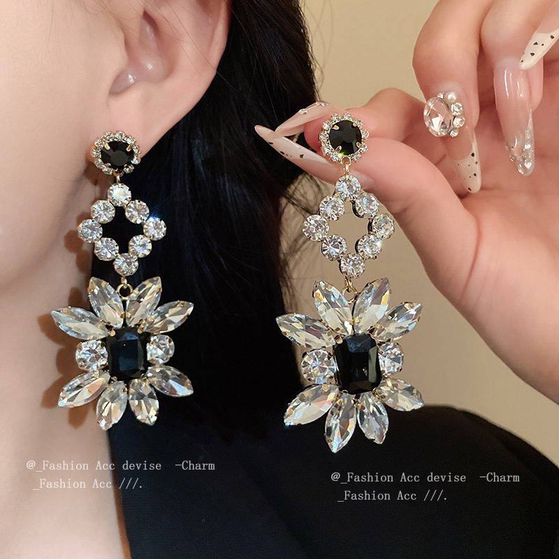 银针镶钻菱形花朵耳环欧美轻奢风气质耳坠网红精致新款耳饰