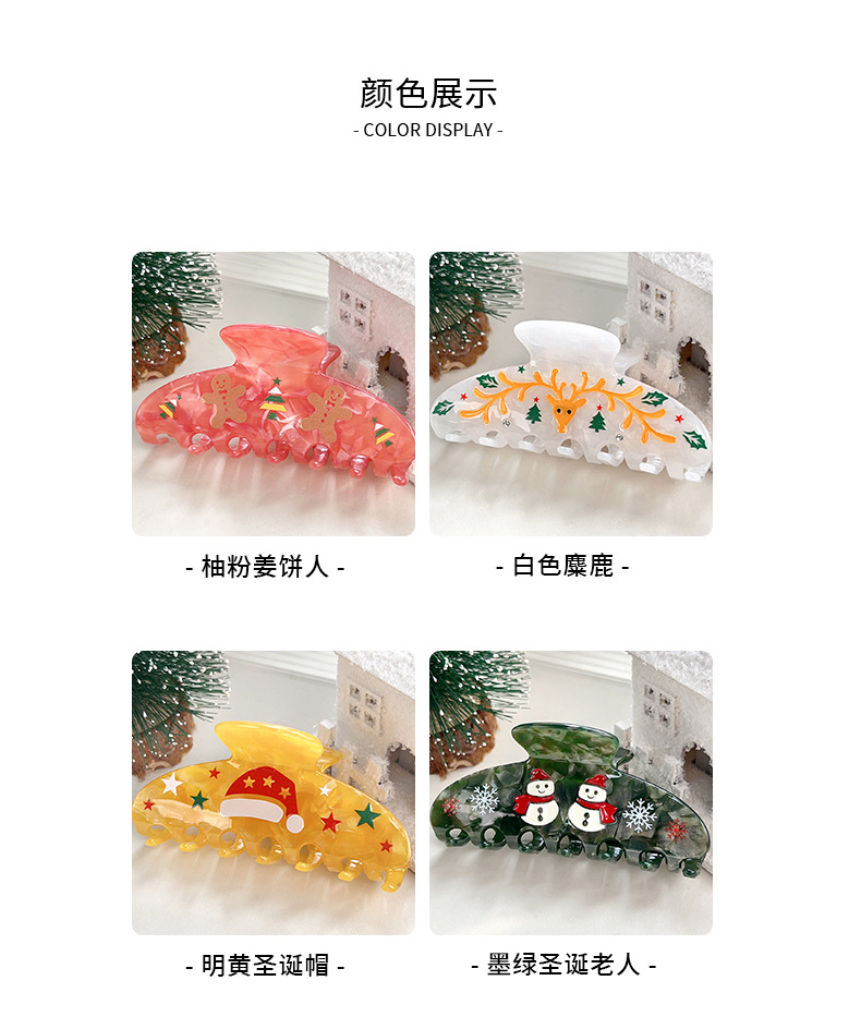 圣诞节发夹女卡通趣味姜饼人抓夹后脑勺盘发鲨鱼夹发饰
