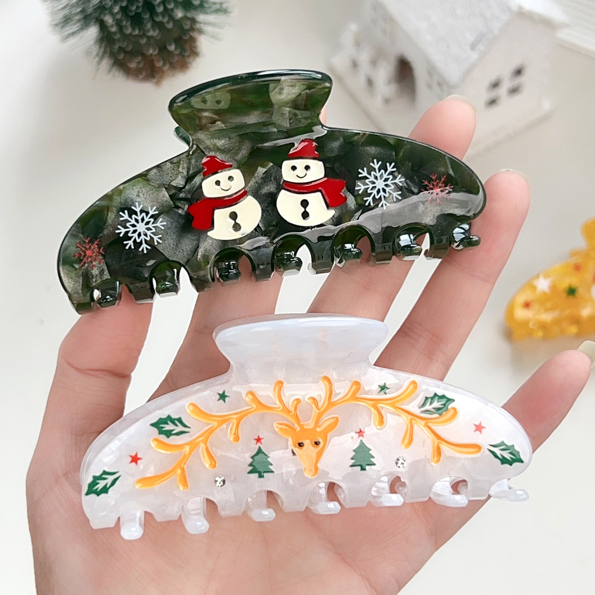 新款醋酸圣诞老人雪人雪花发夹卡通点钻发饰糖葫芦可爱发饰发夹女