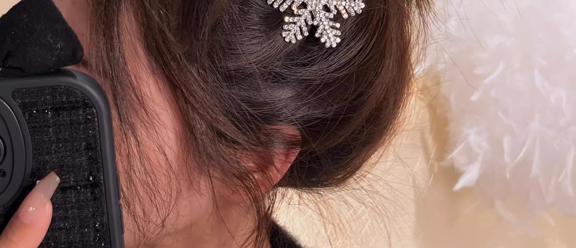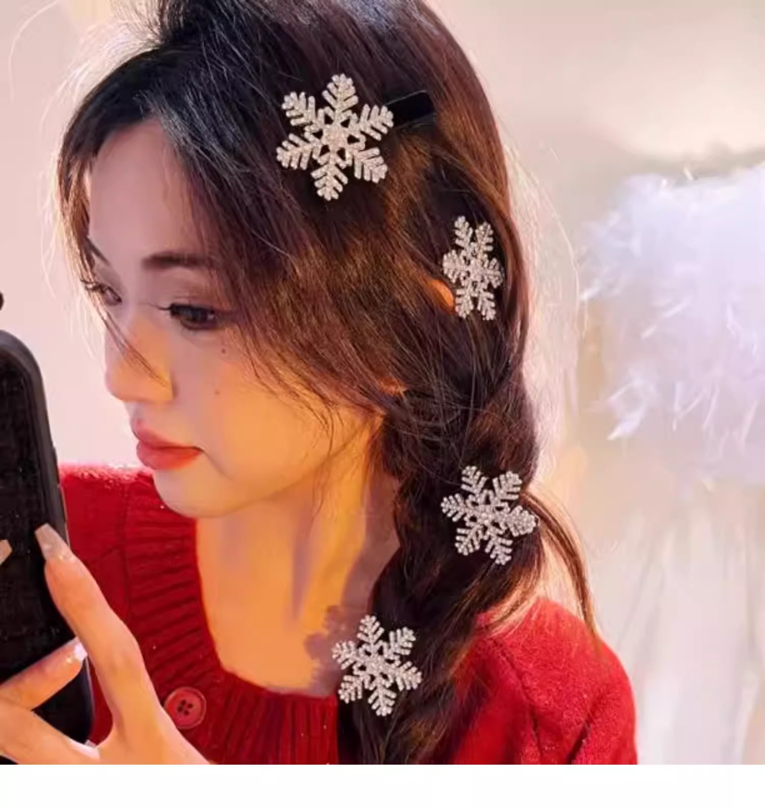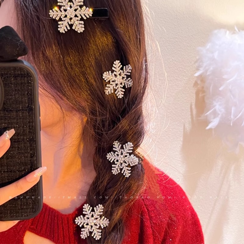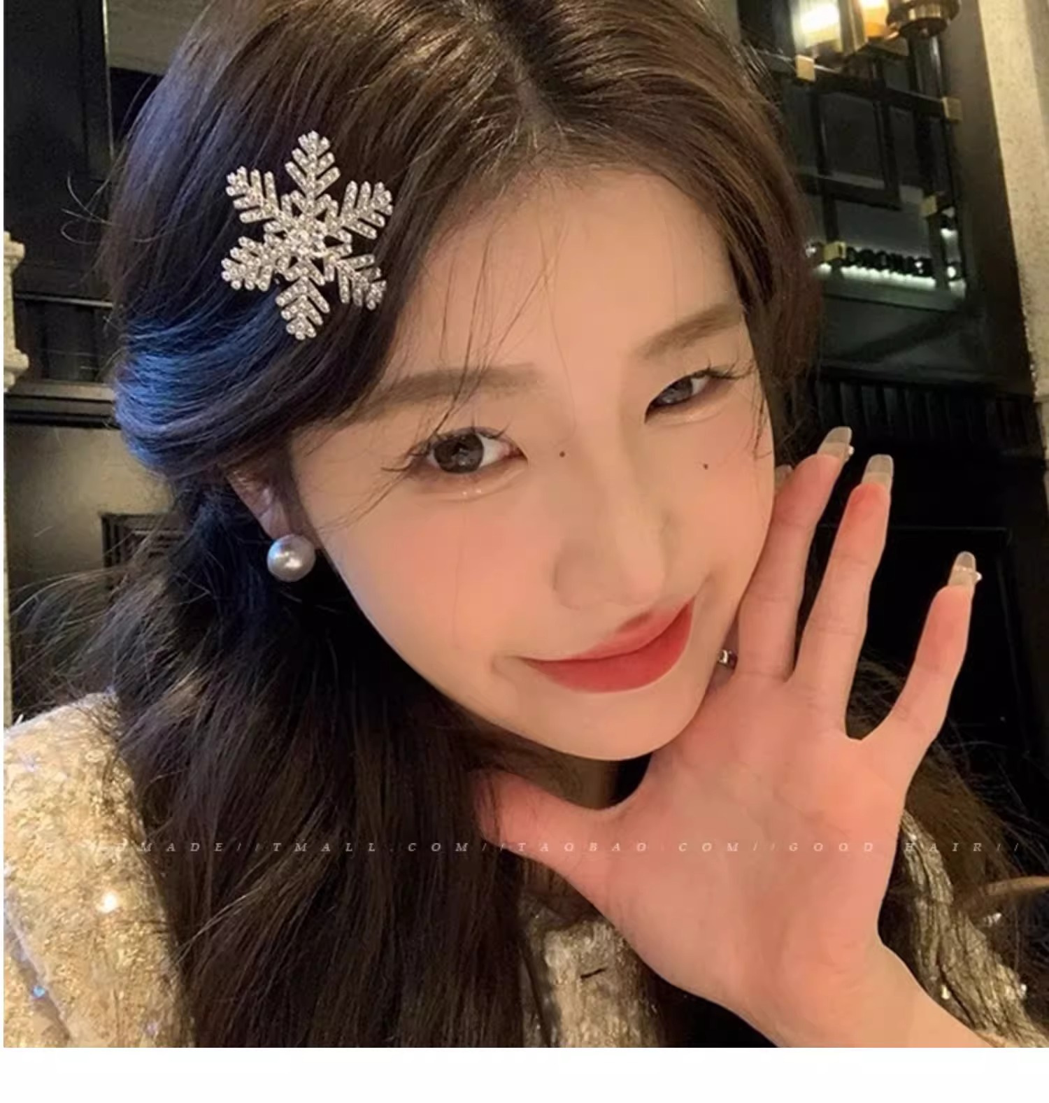 闪钻雪花发夹边夹鸭嘴夹新款高端夹子头饰秋冬圣诞发饰刘海夹