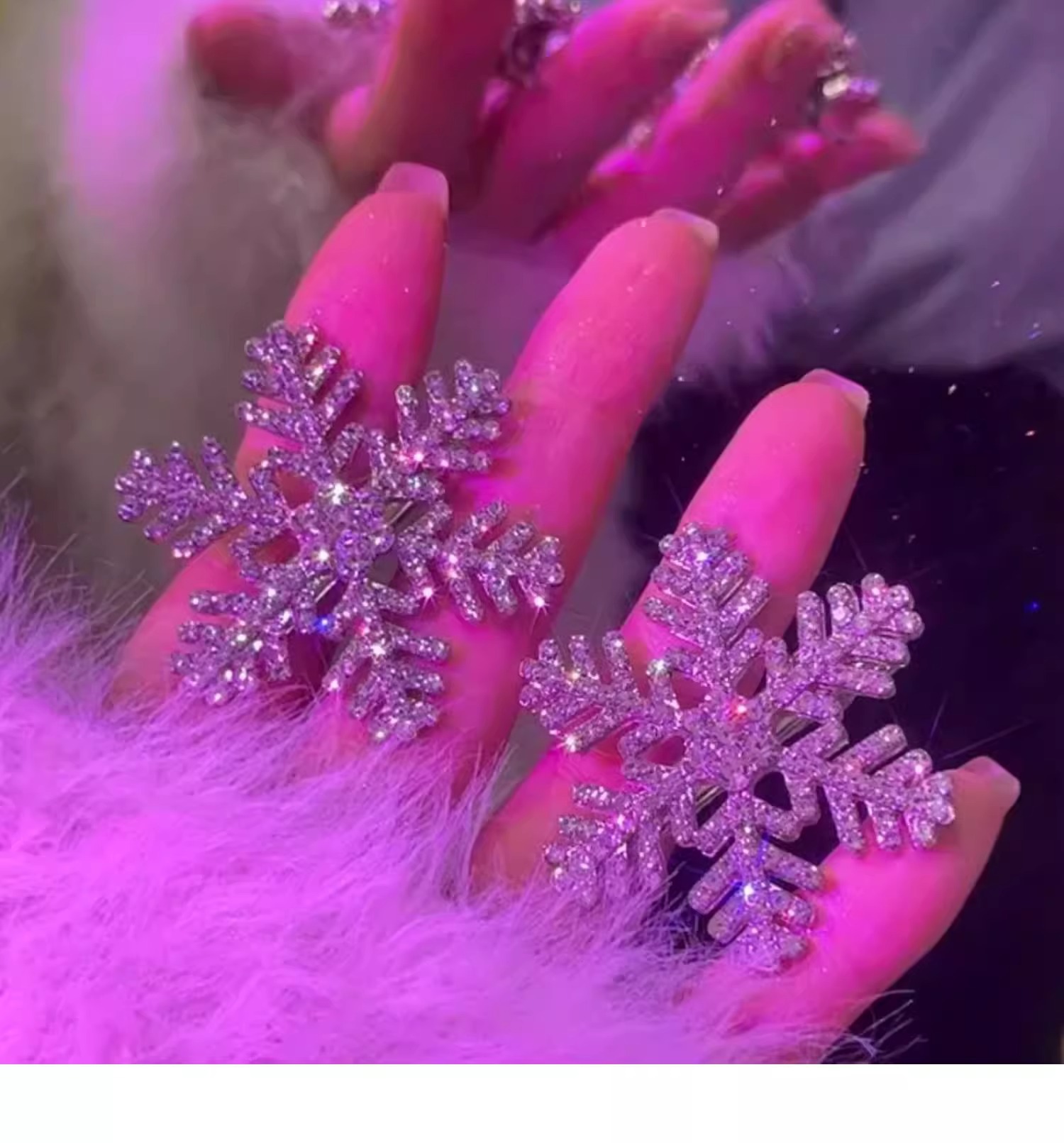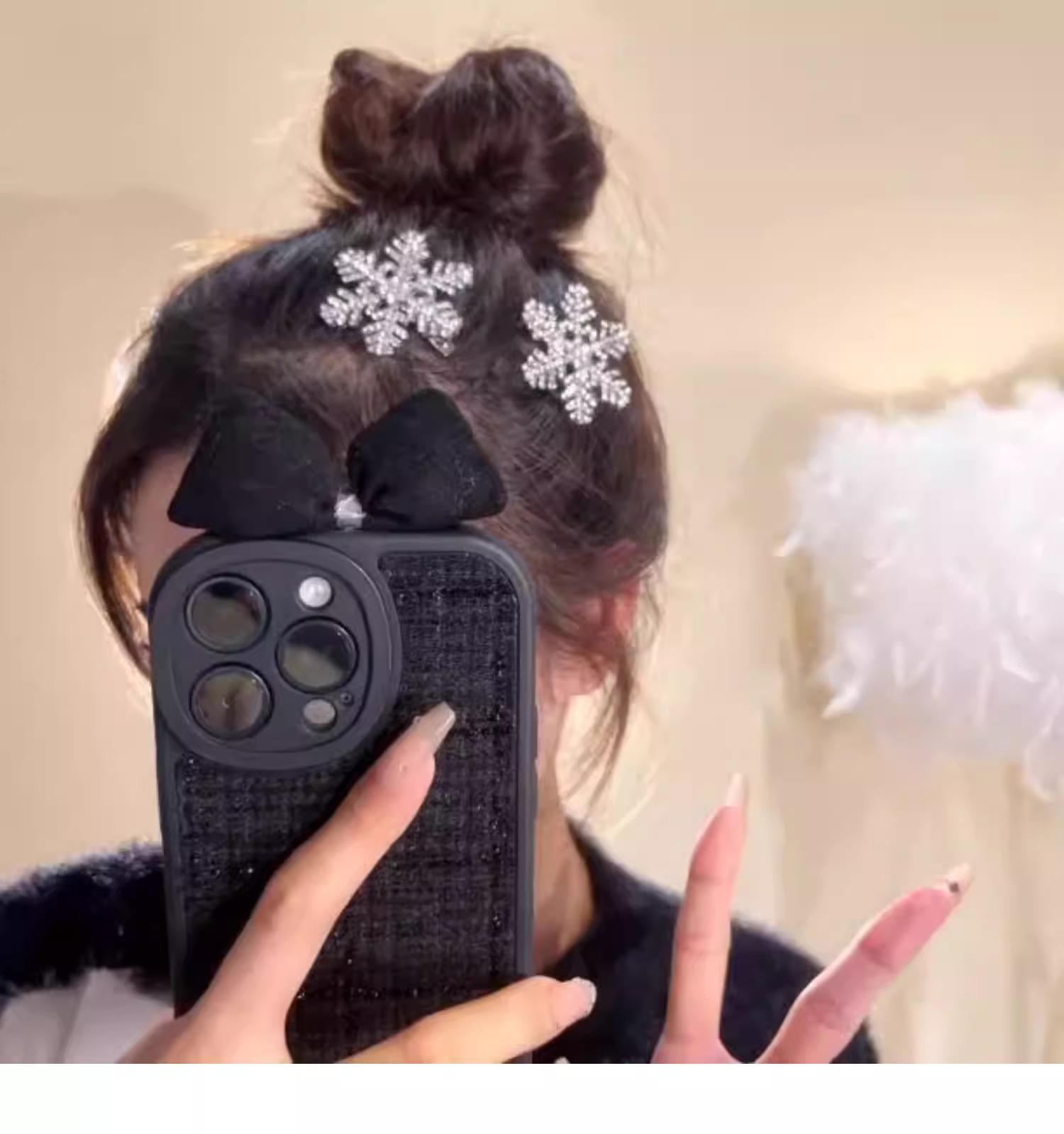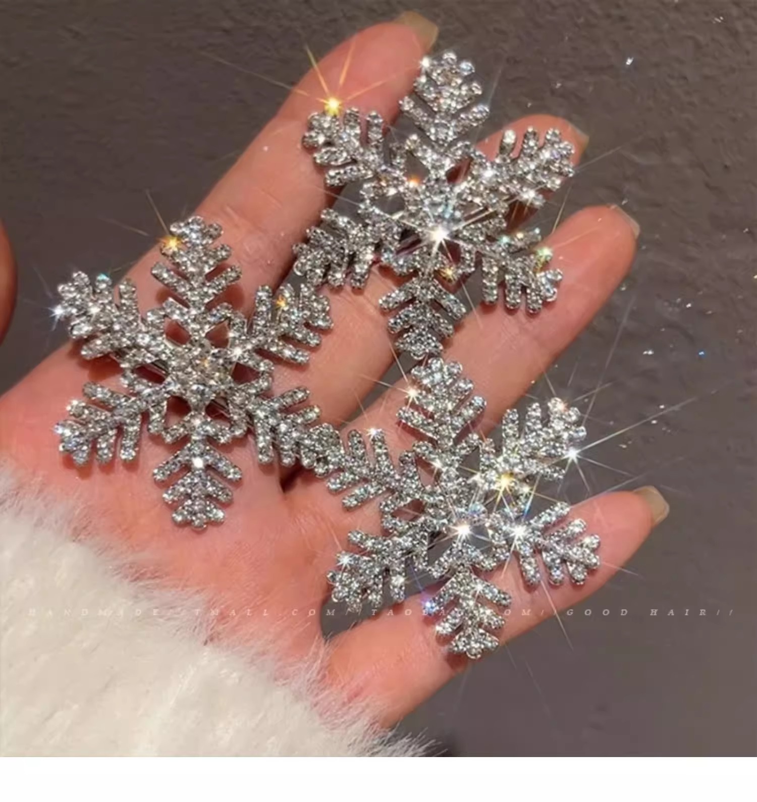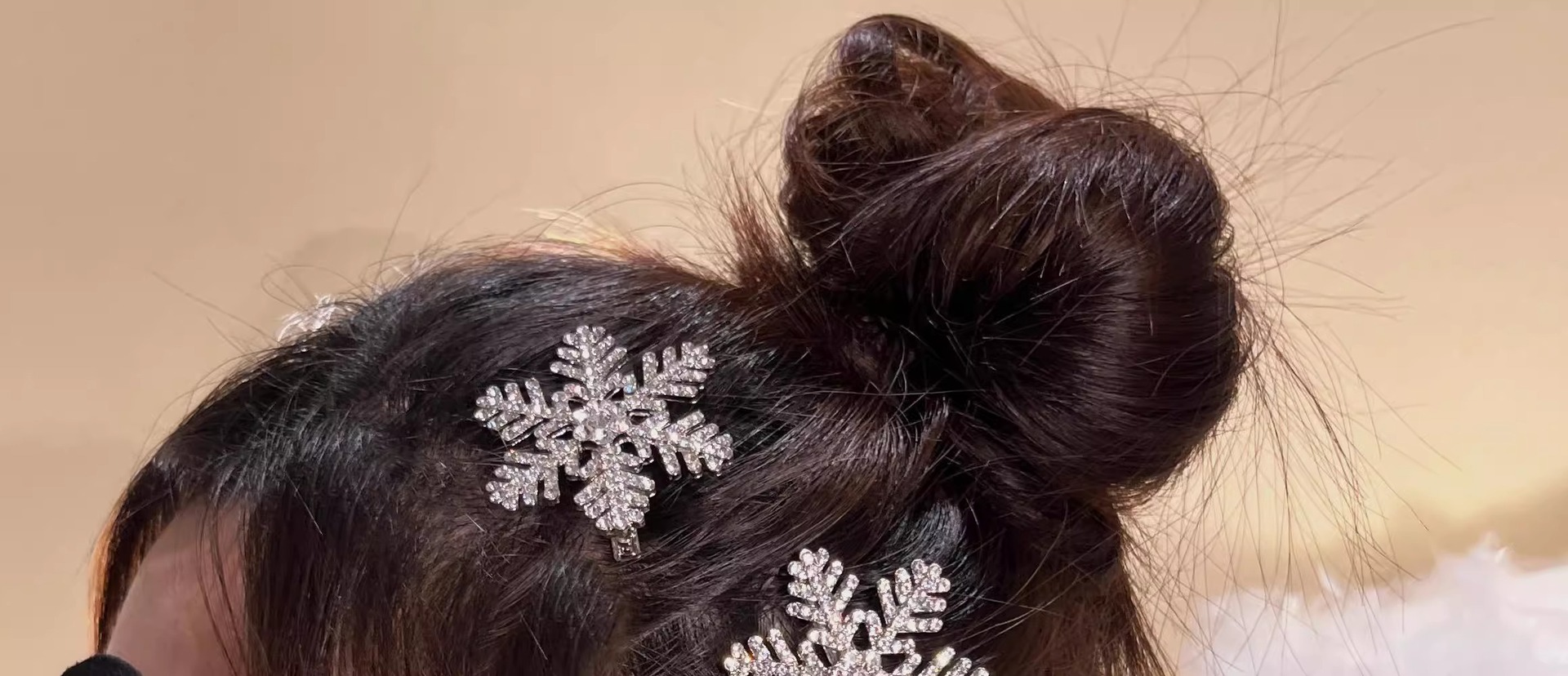闪钻雪花发夹边夹鸭嘴夹新款高端夹子头饰秋冬圣诞发饰刘海夹