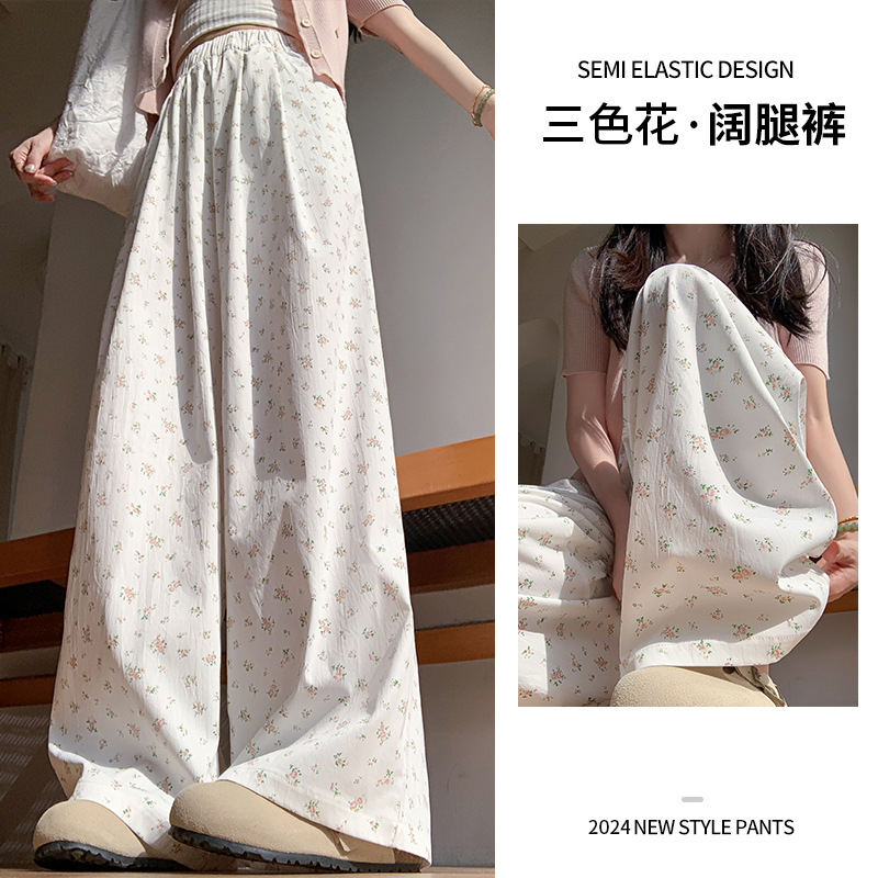 碎花阔腿裤夏女垂感新款遛弯宽松休闲裤显瘦女装白色山本裤
