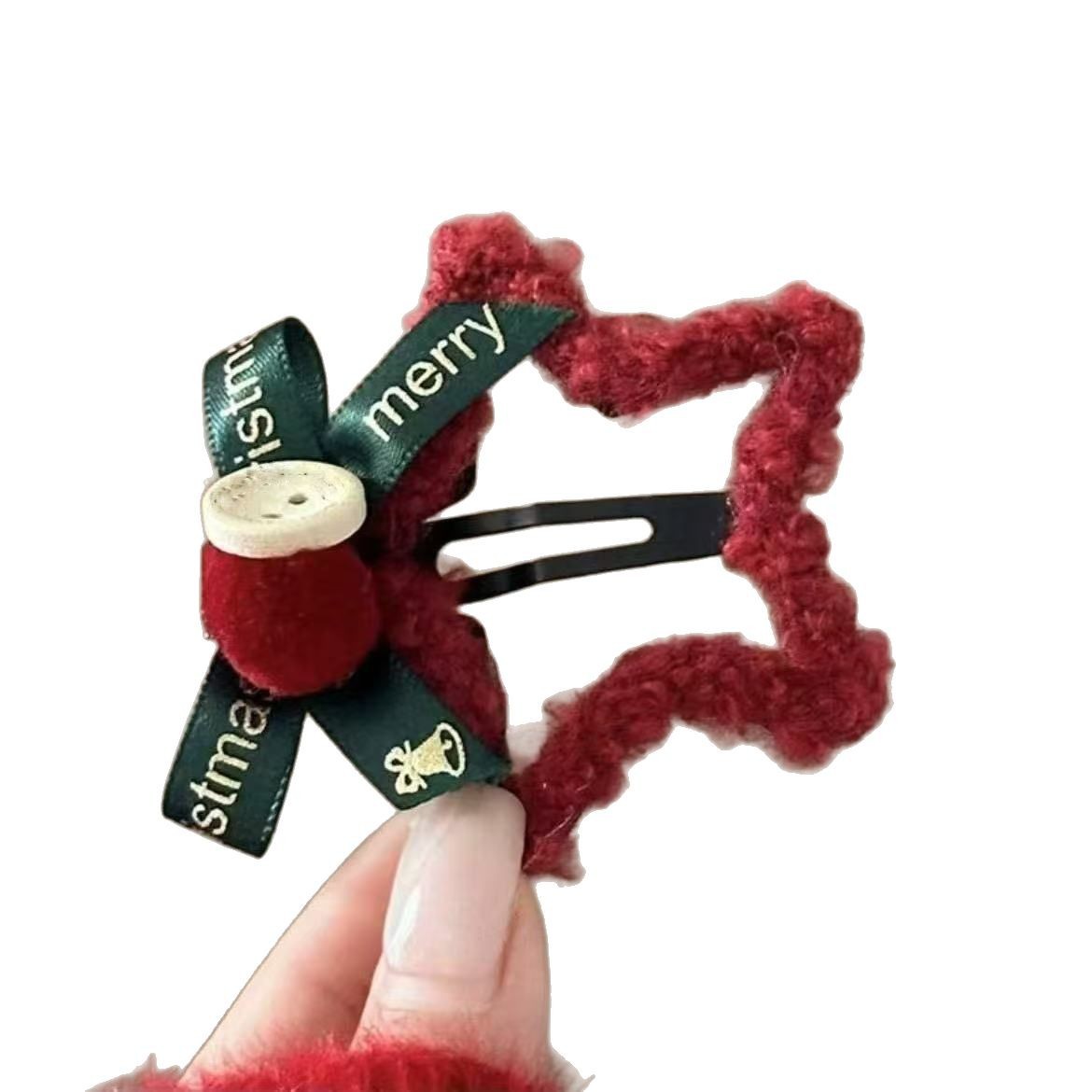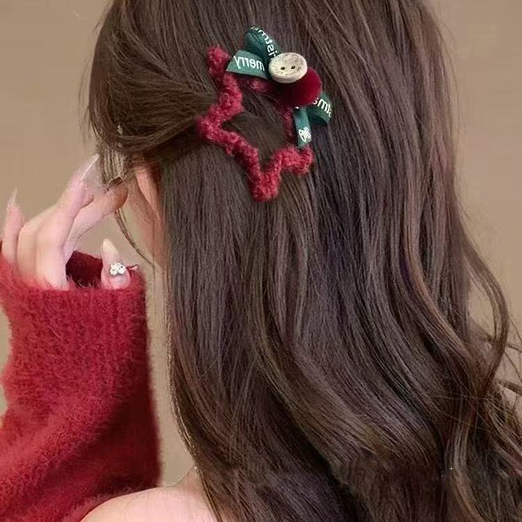 红色毛绒星星发夹蝴蝶结刘海BB夹侧边碎发卡圣诞头饰发饰手工