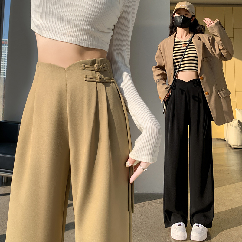 盘扣西装阔腿裤女春秋款复古中国风设计感高腰垂感窄版直筒休闲裤