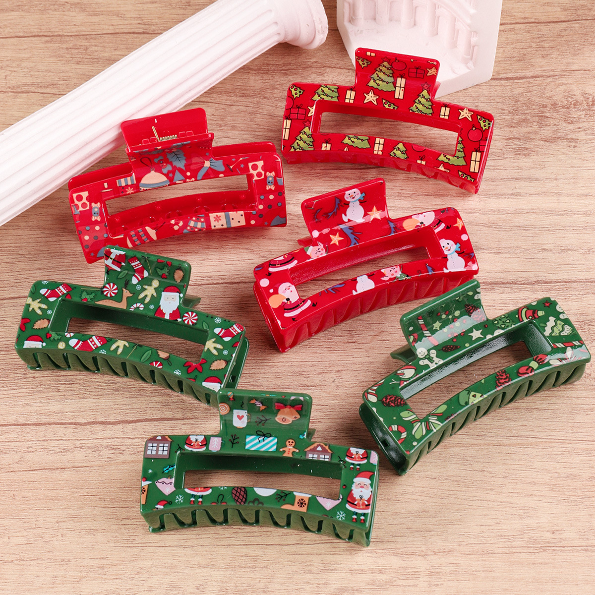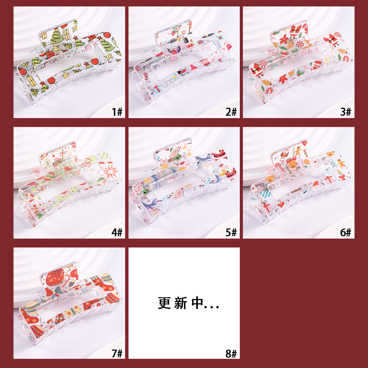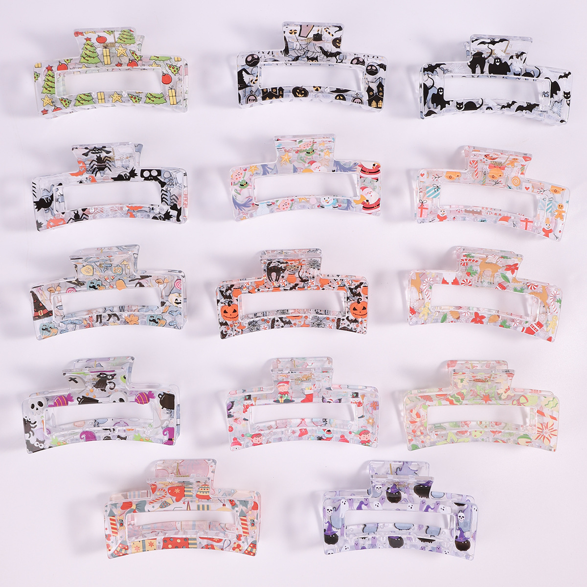 圣诞万圣8-5方透明印花抓夹鲨鱼夹后脑勺盘发女士实用发夹