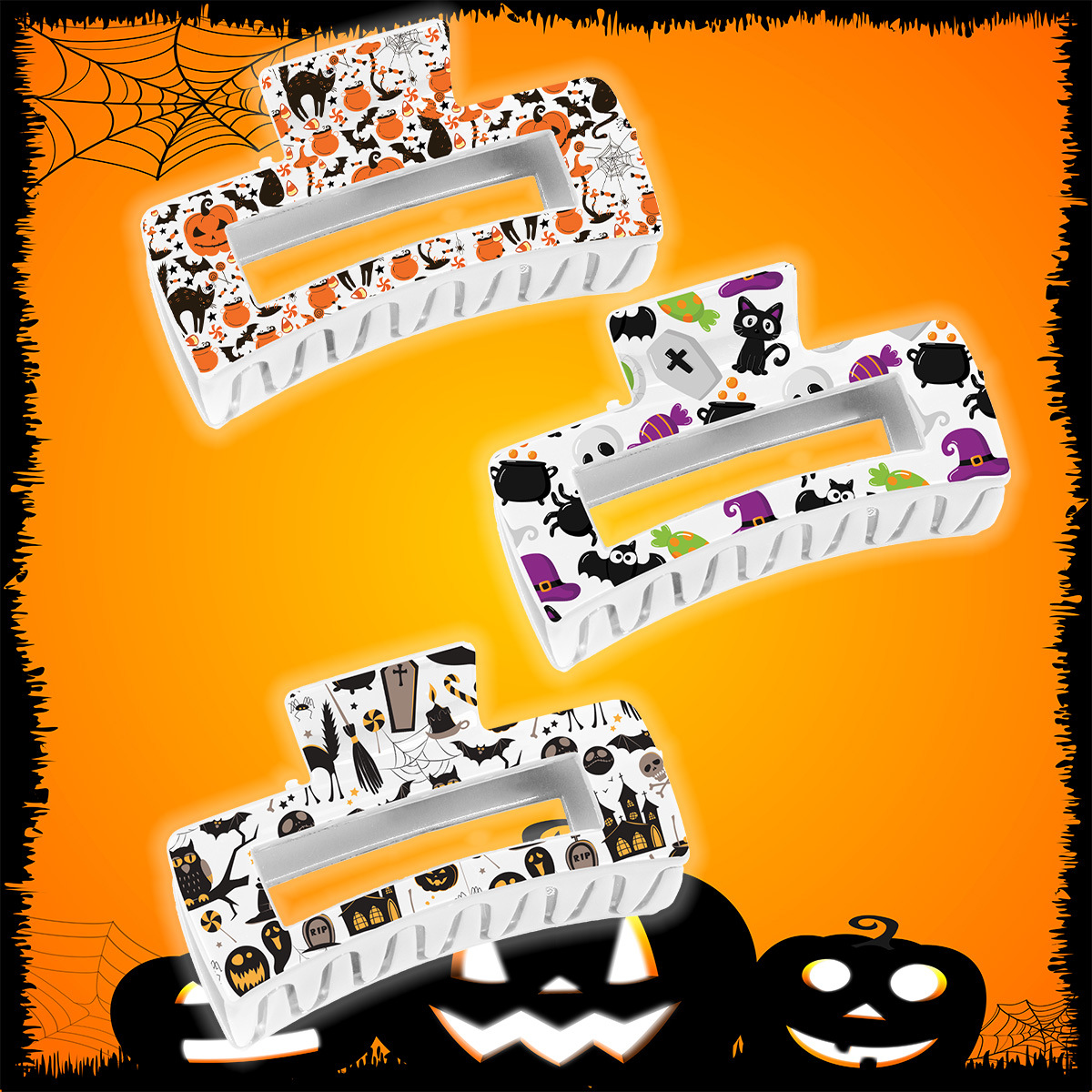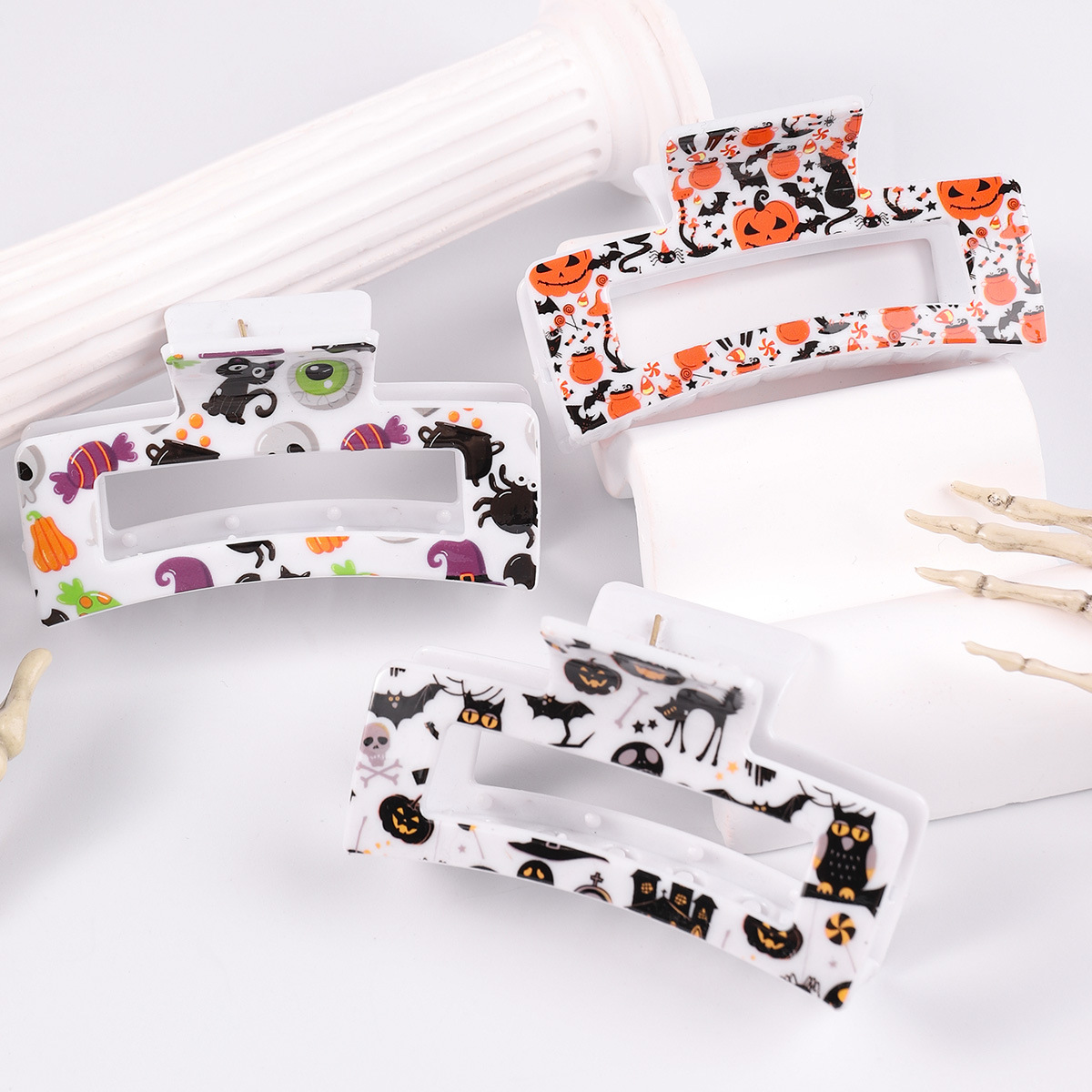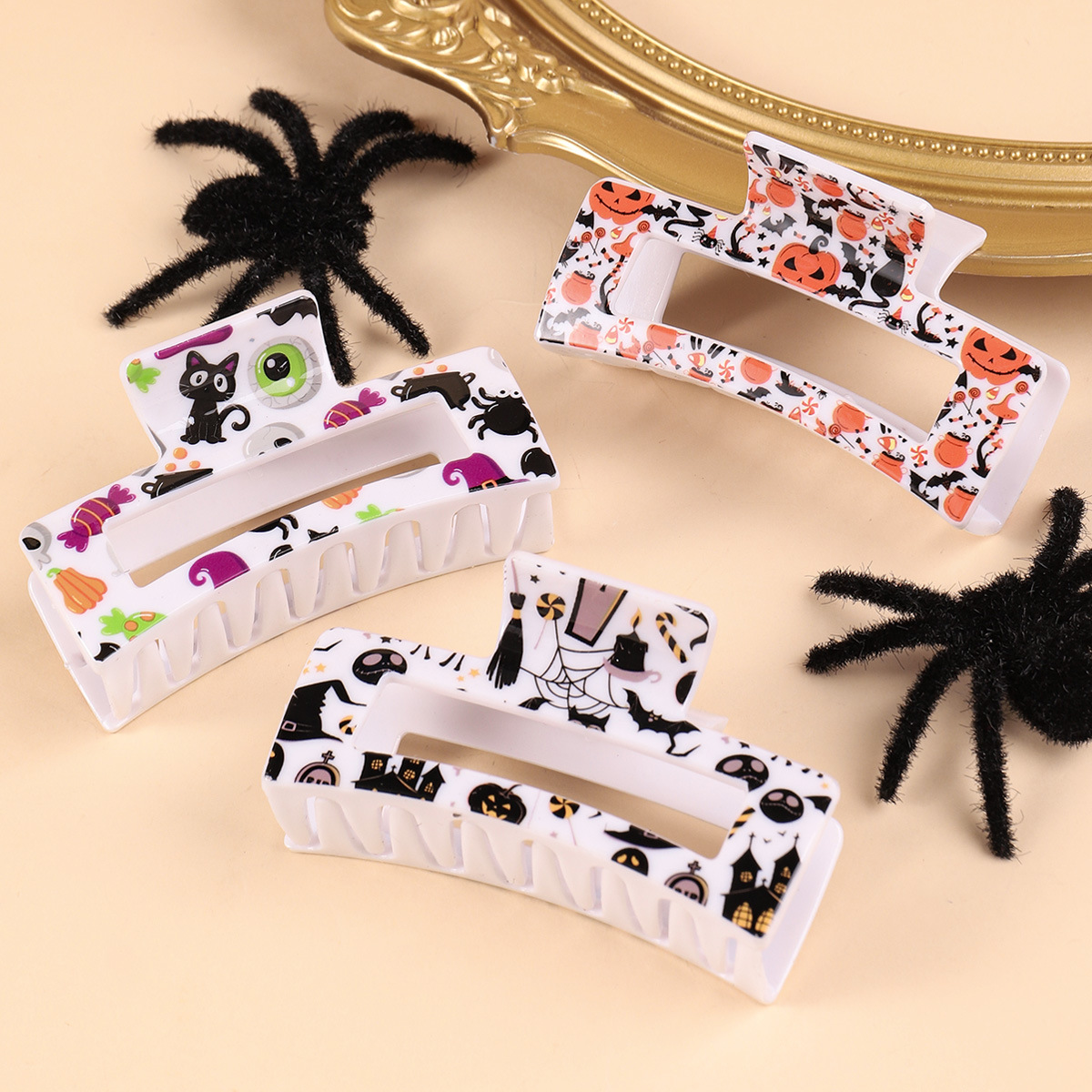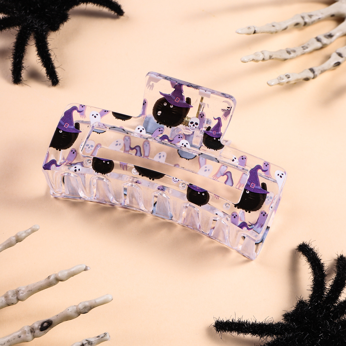 圣诞万圣8-5方透明印花抓夹鲨鱼夹后脑勺盘发女士实用发夹