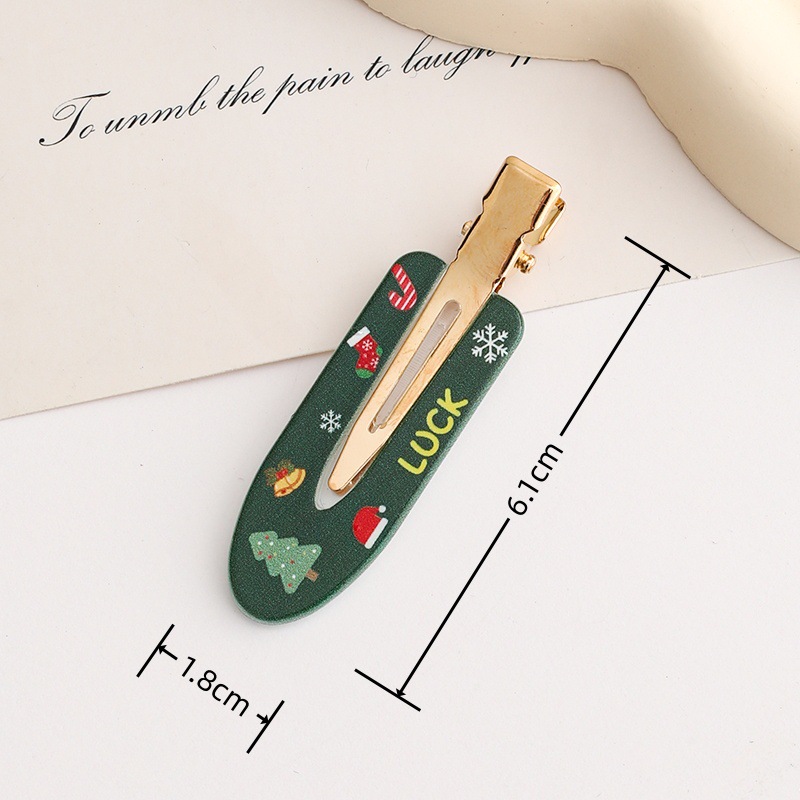 6厘米圣诞主题UV印制图案无痕发夹女式儿童刘海碎发侧边夹DIY底夹