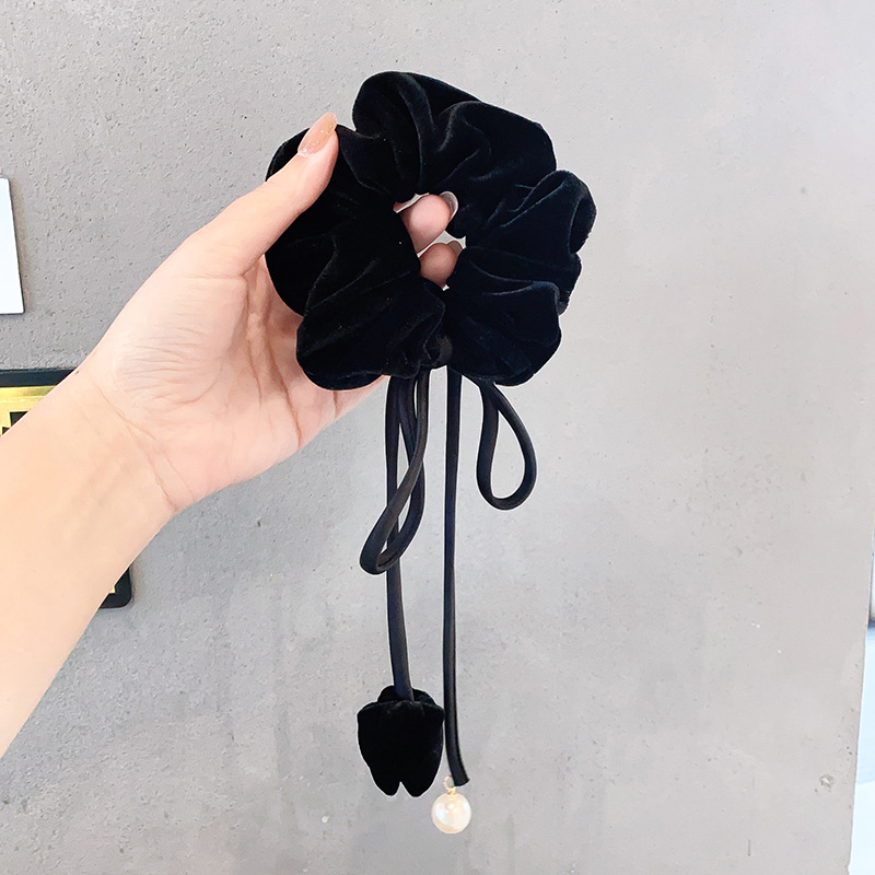 新款韩系丝绒蝴蝶结大肠发圈花苞头绳高级感发绳女低马尾发饰