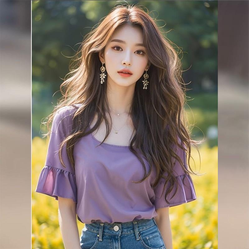法式紫色雪纺上衣女新款夏季轻奢高级感小众独特别致短袖t恤