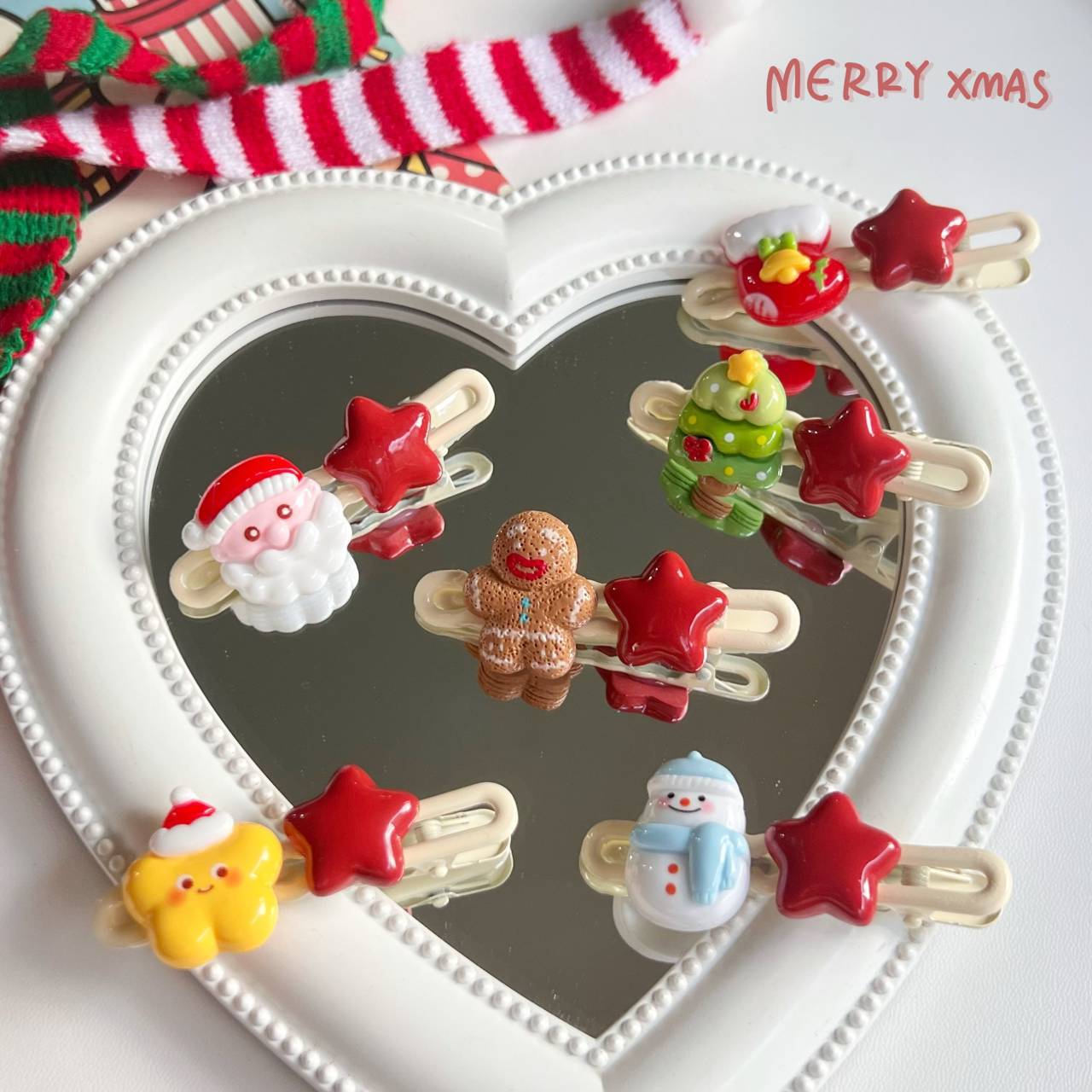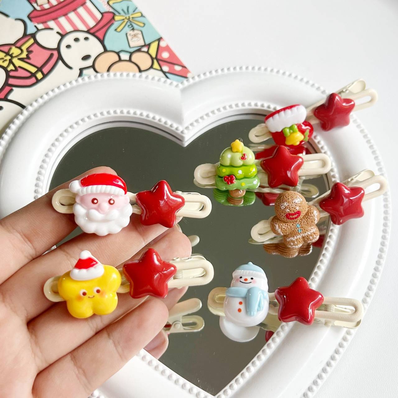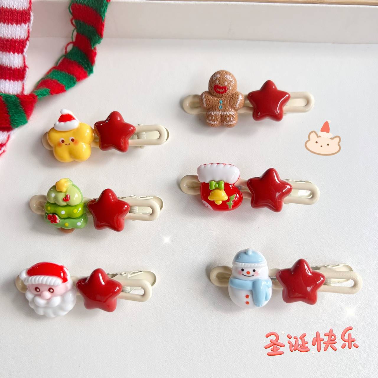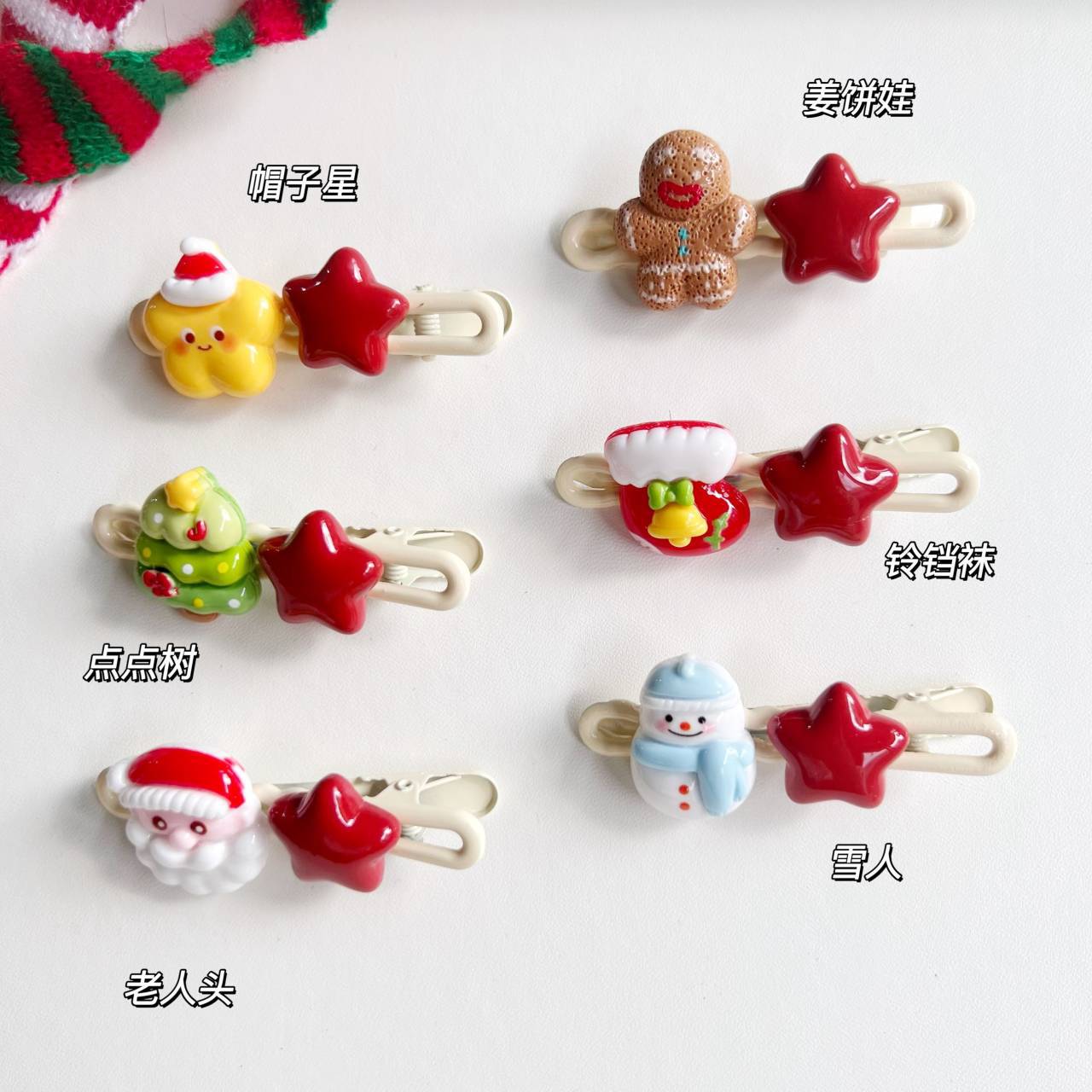 可爱卡通圣诞老人星星波浪夹圣诞礼物发夹发饰发卡送闺蜜发饰