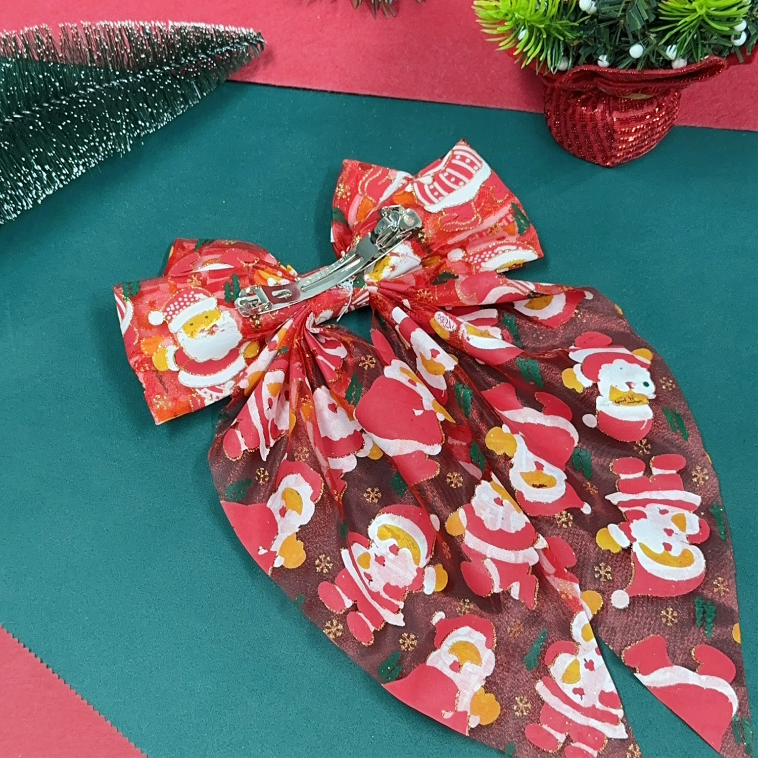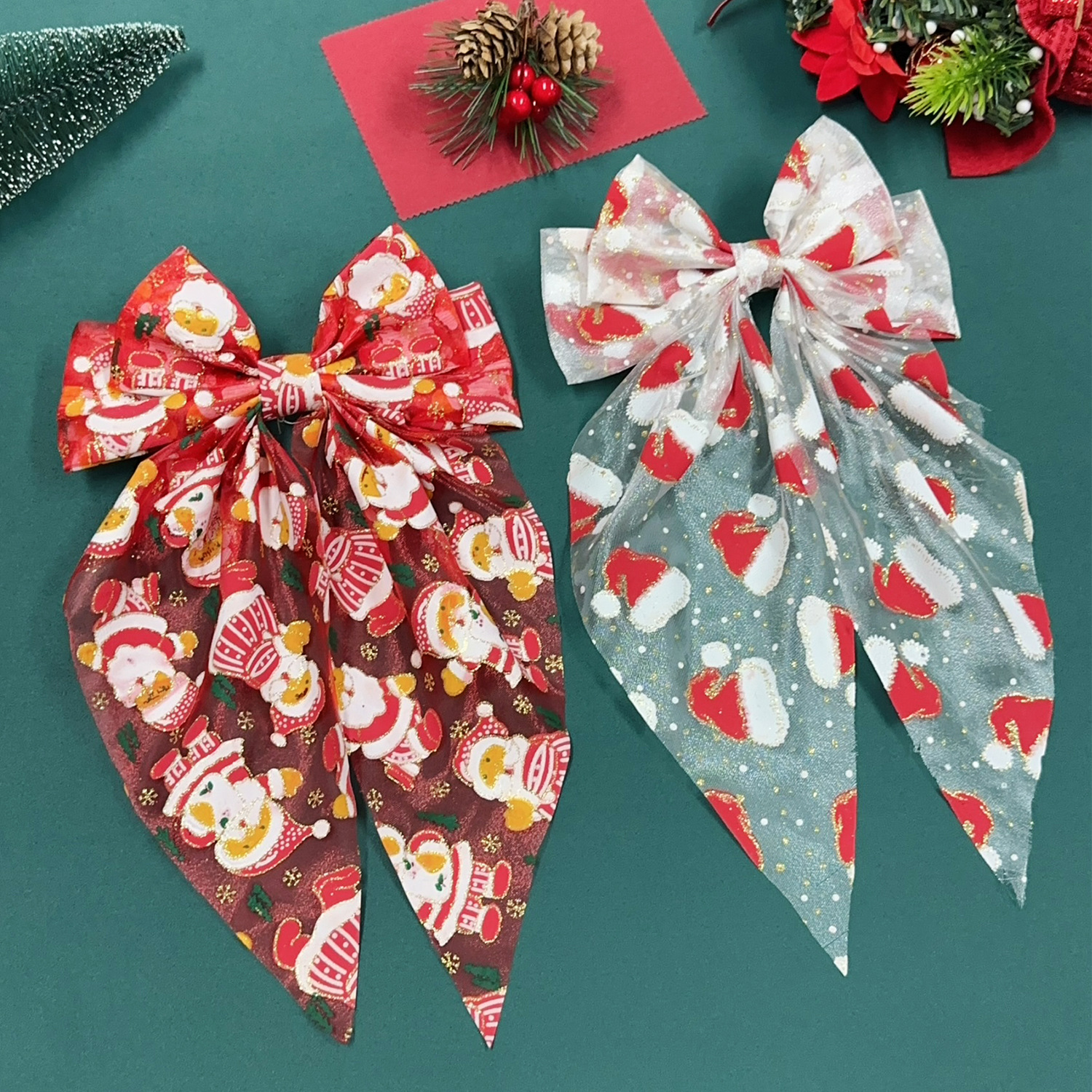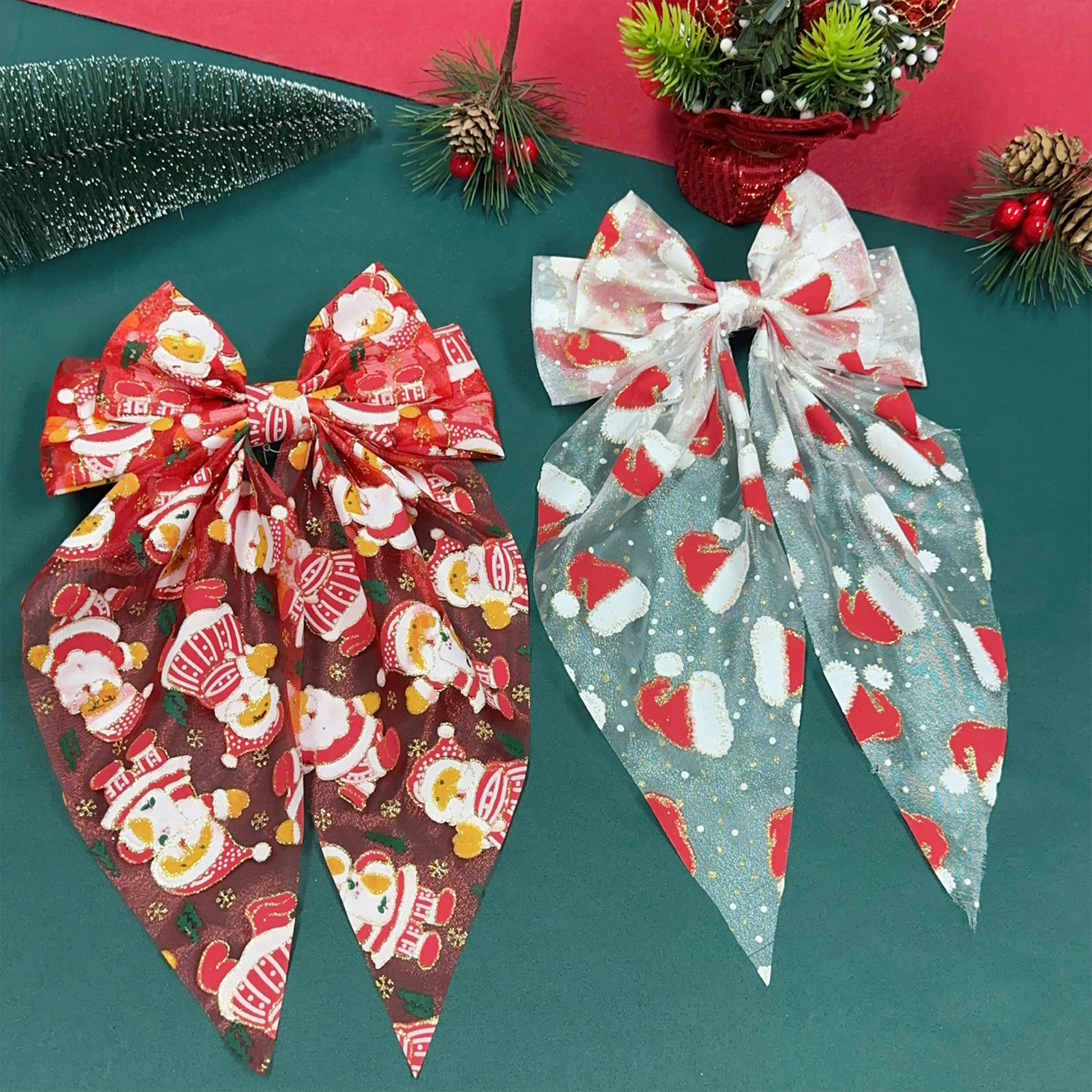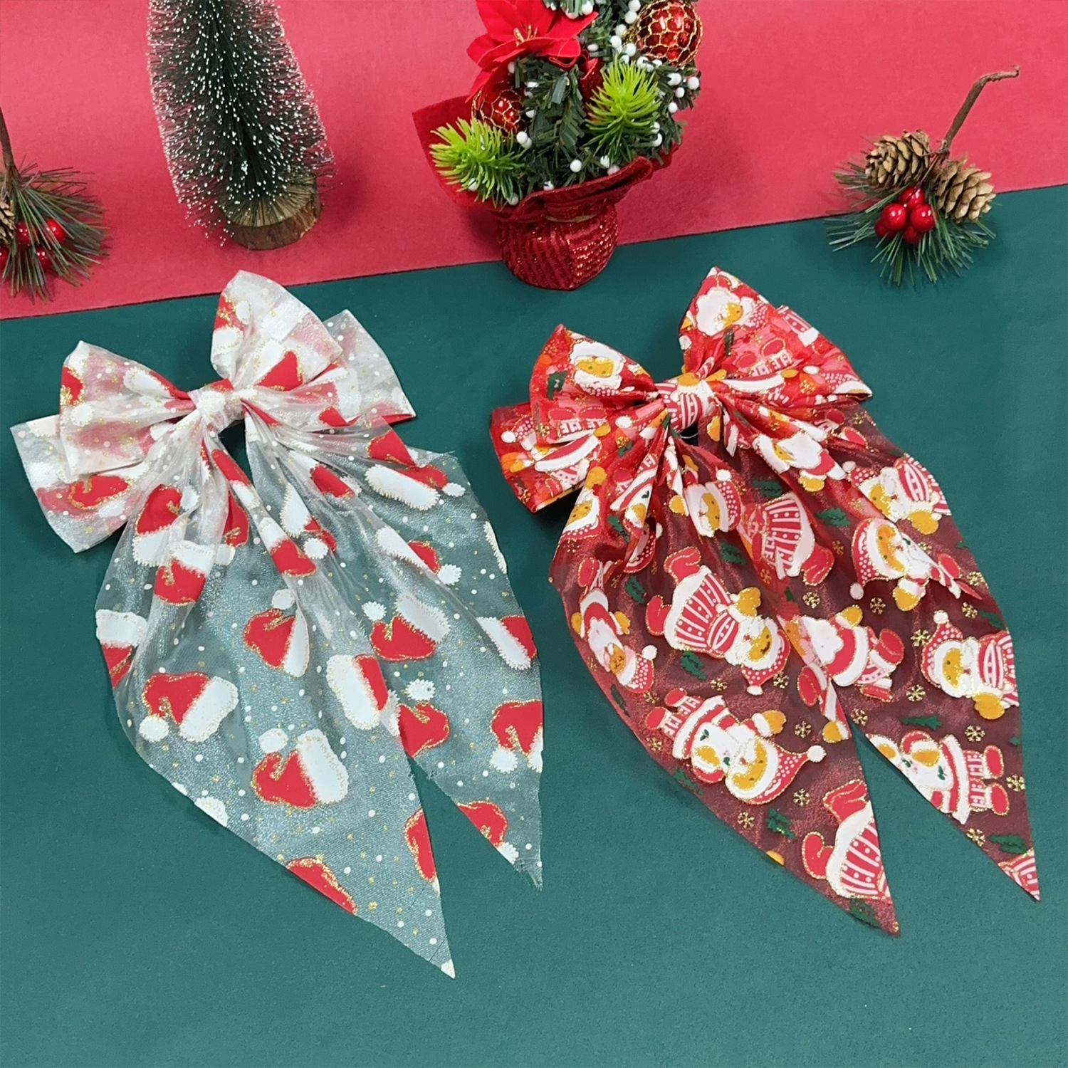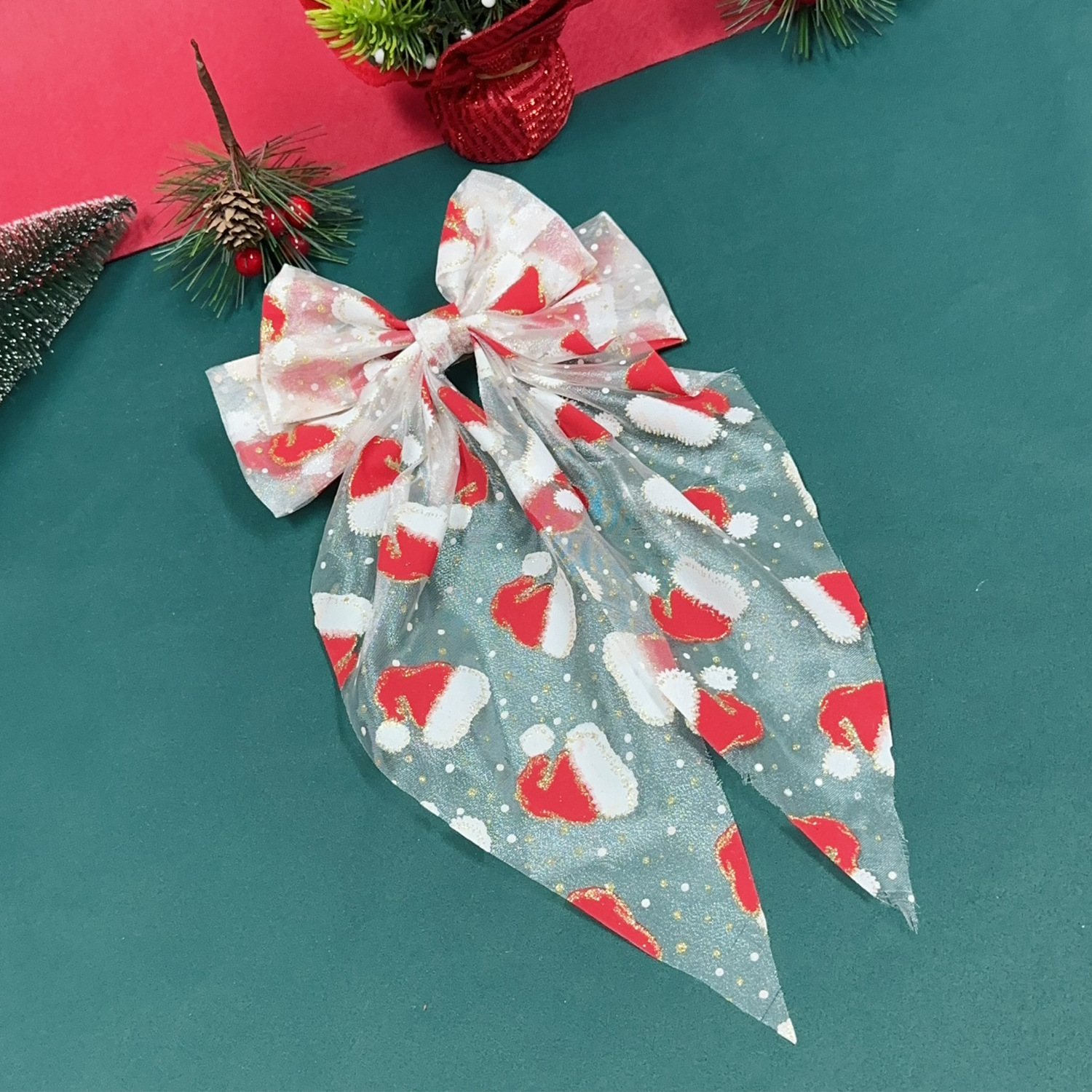 圣诞发饰圣诞帽网纱蝴蝶结弹簧夹雪人发夹节日礼物头饰