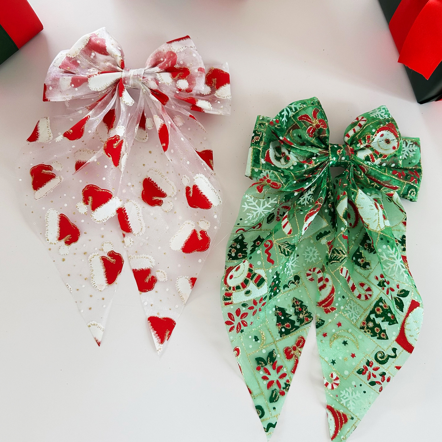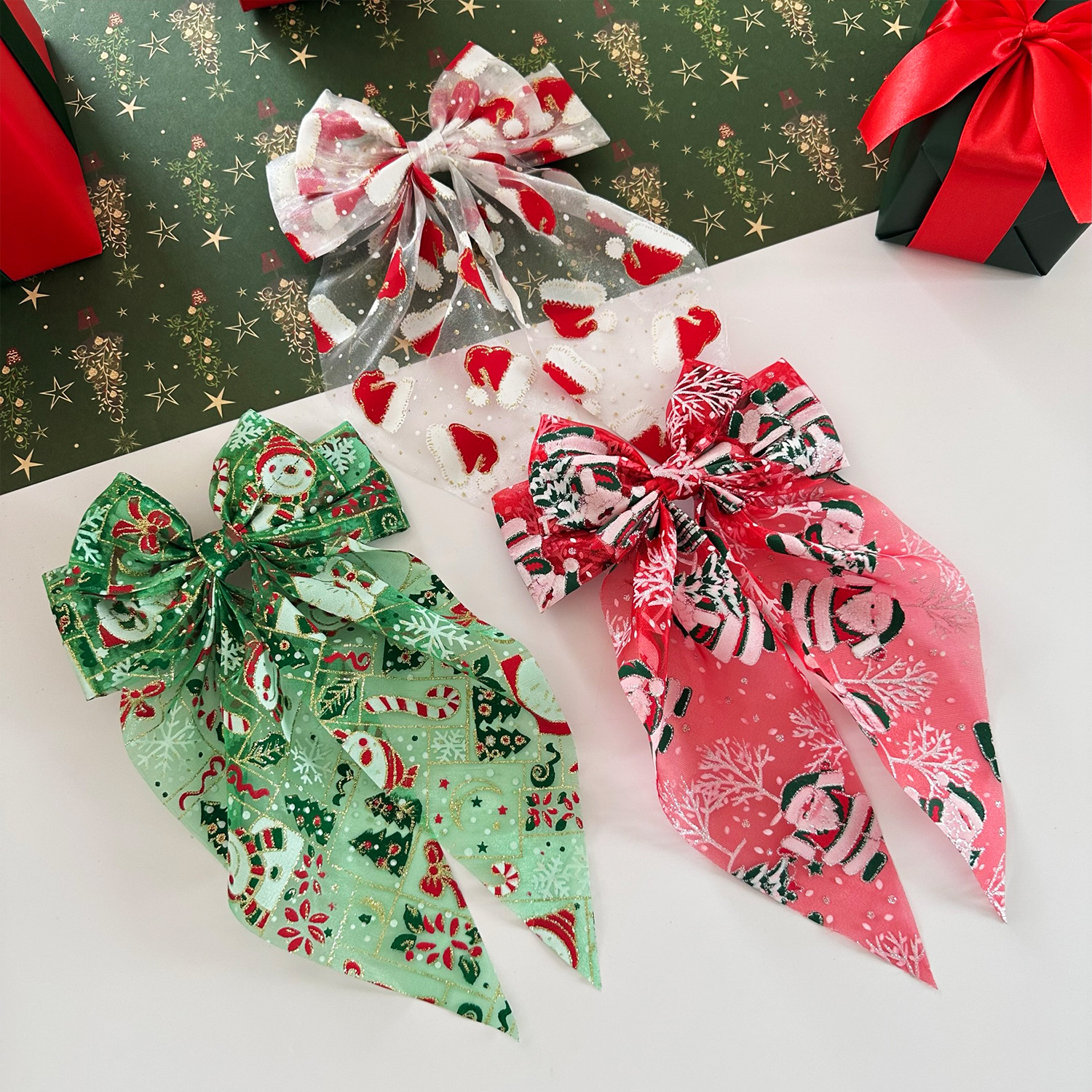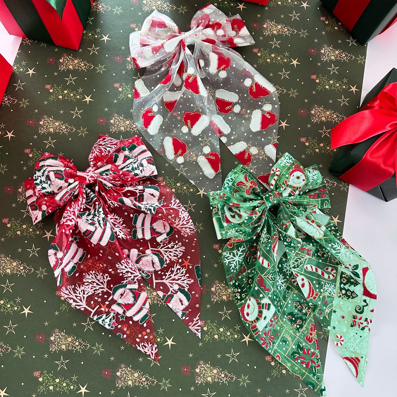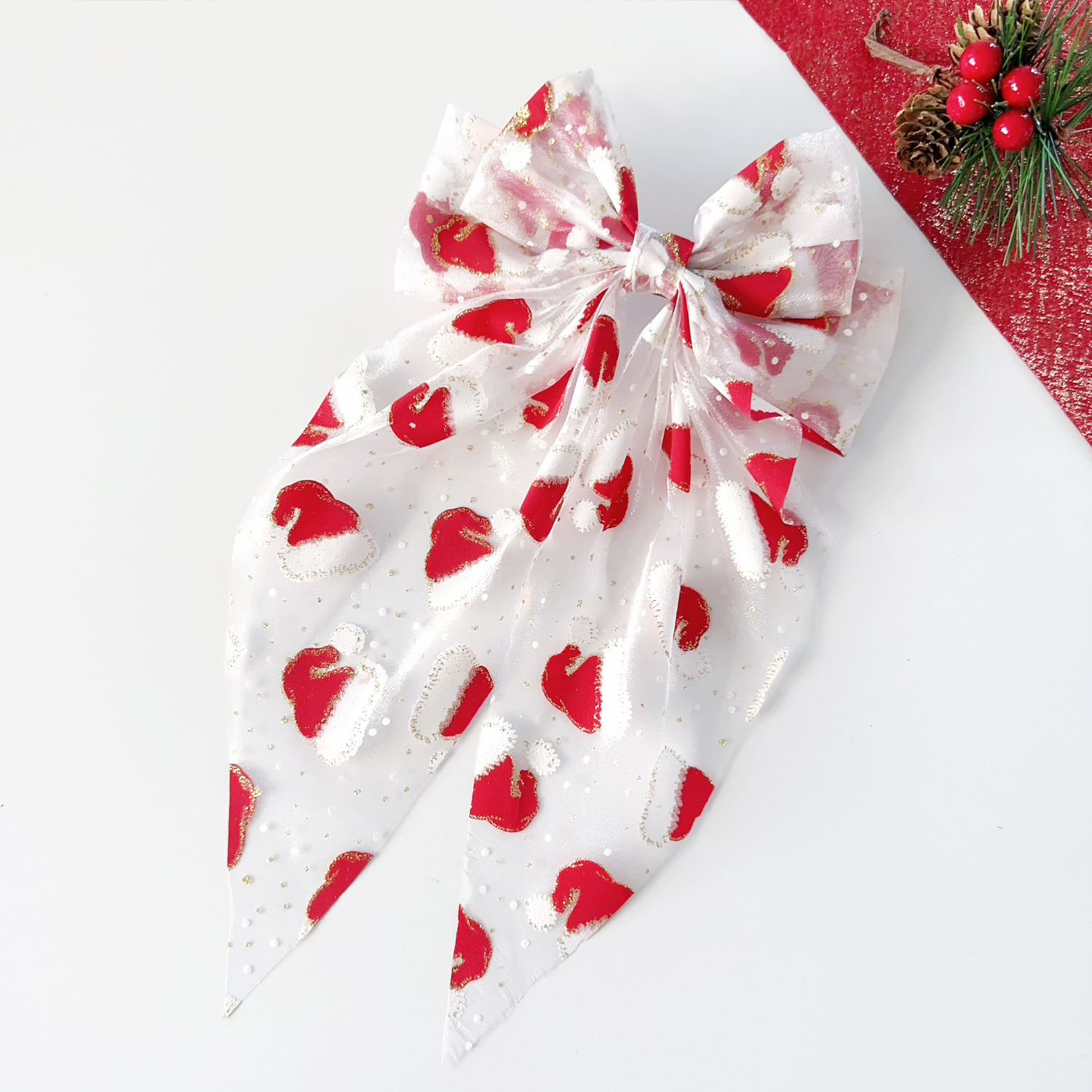 圣诞发饰圣诞帽网纱蝴蝶结弹簧夹雪人发夹节日礼物头饰